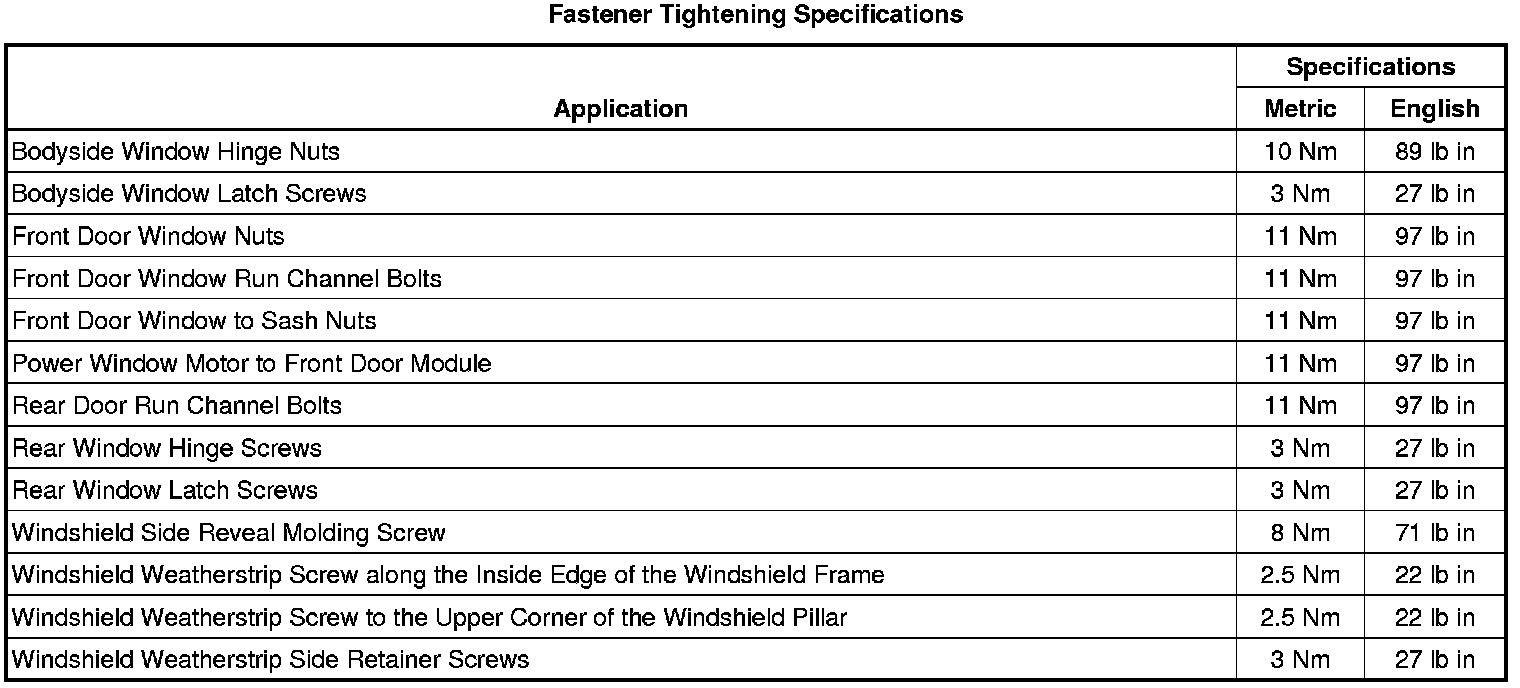 Fastener Tightening Specifications