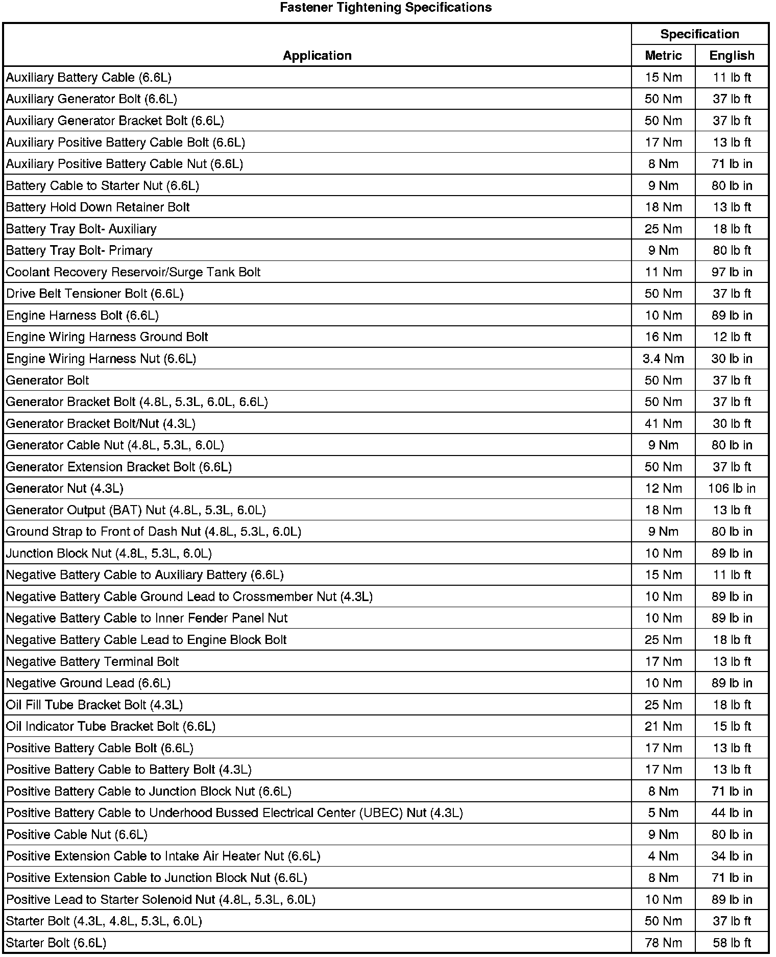 Fastener Tightening Specifications
