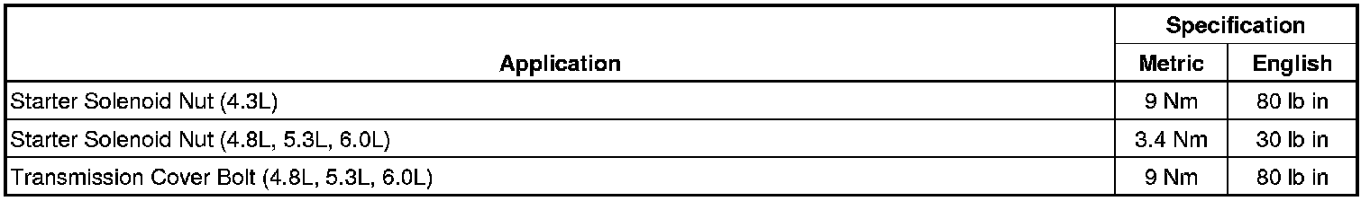Starting and Charging: Specifications