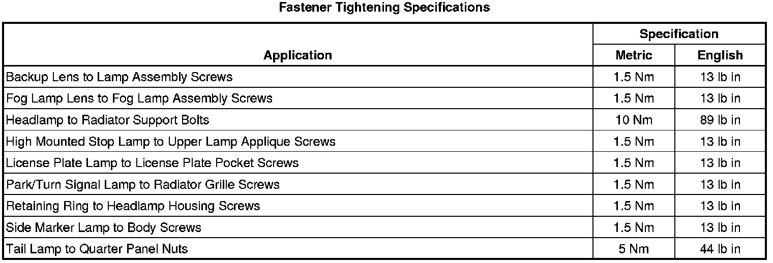 Fastener Tightening Specifications