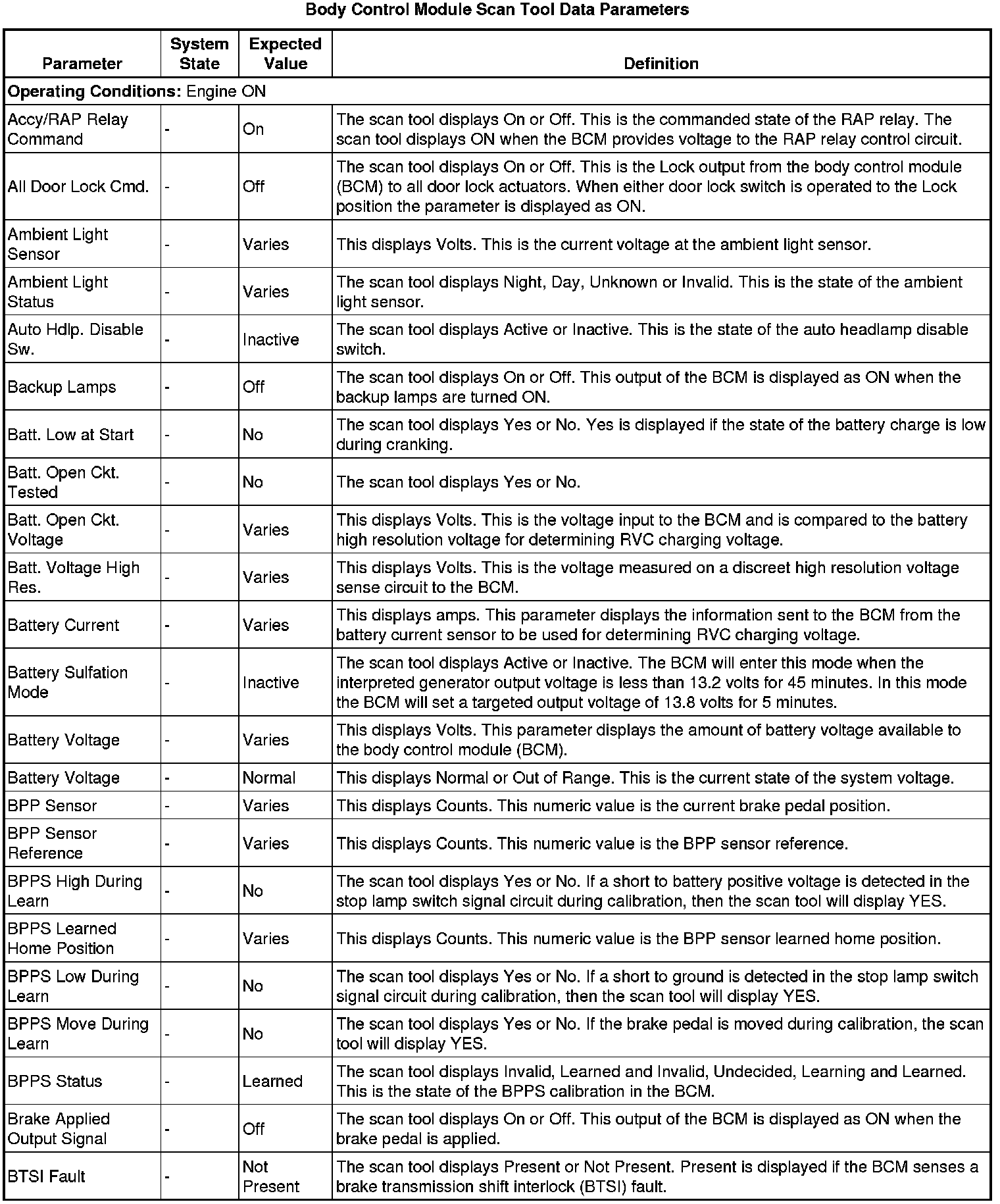 Body Control Systems: Testing and Inspection
