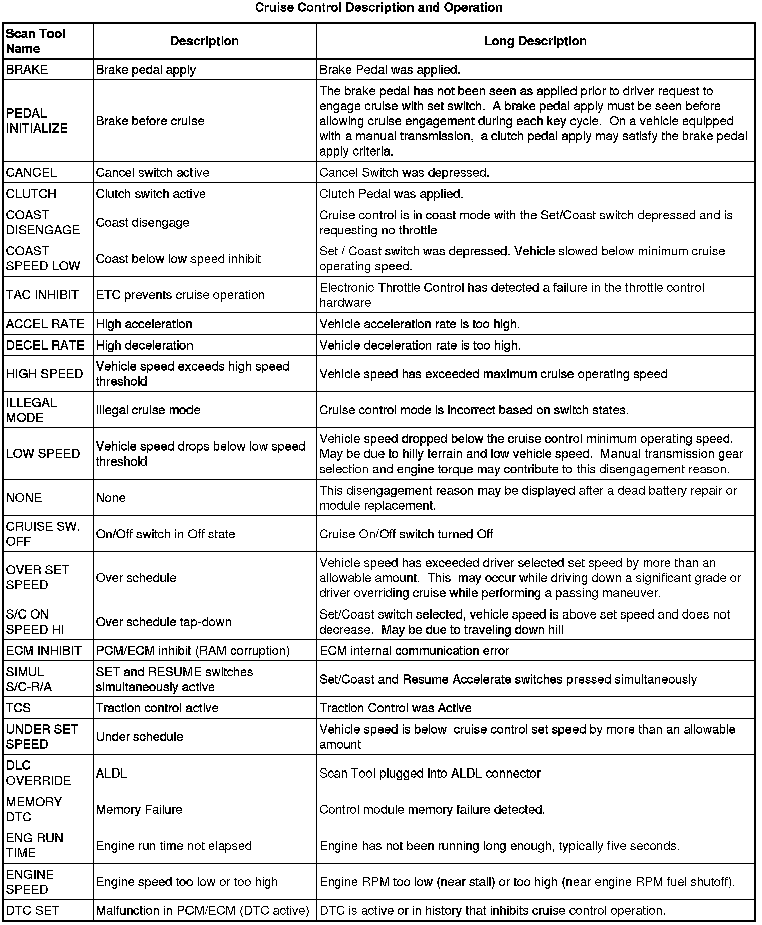 Cruise Control Inhibit Reasons