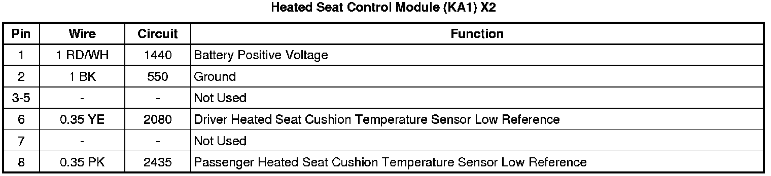 Heated Seat Control Module (KA1) X2