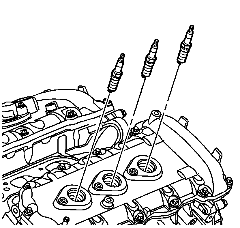 1. Remove the ignition coil(s). Refer to Ignition Coil Replacement - Bank 1 Ignition Coil Replacement - Bank 1 and/or Ignition Coil Replacement - Bank 2 Ignition Coil Replacement - Bank 2.