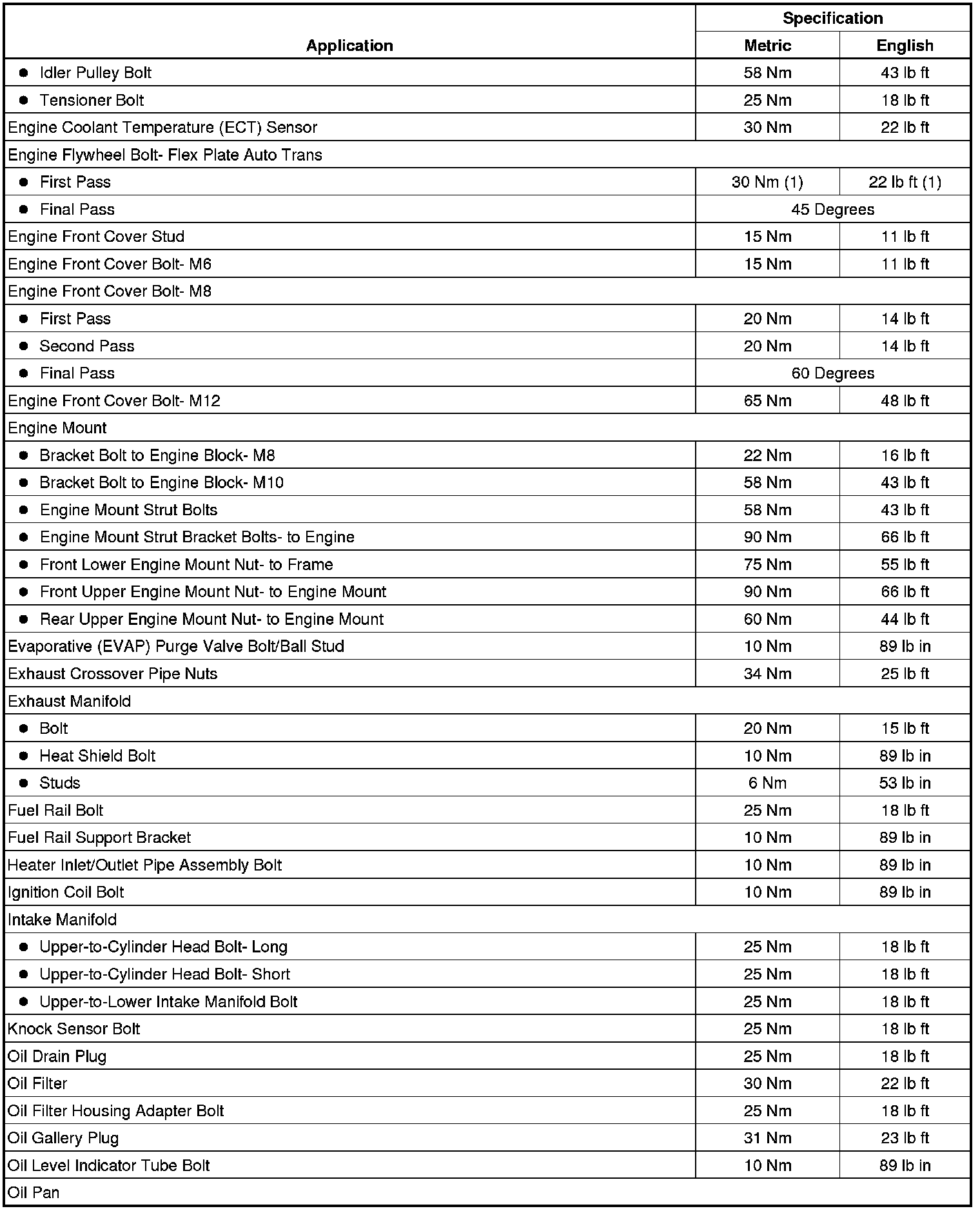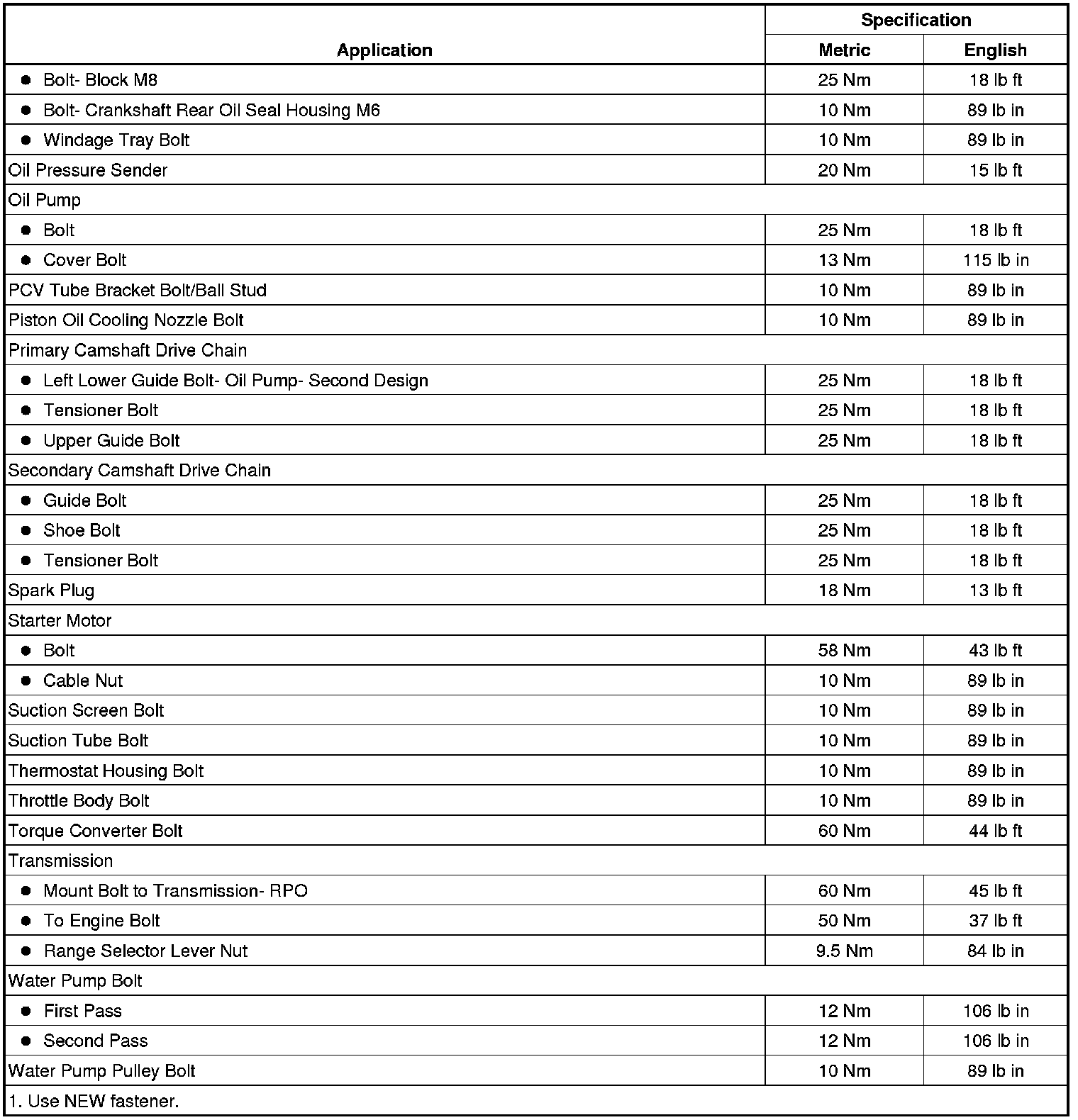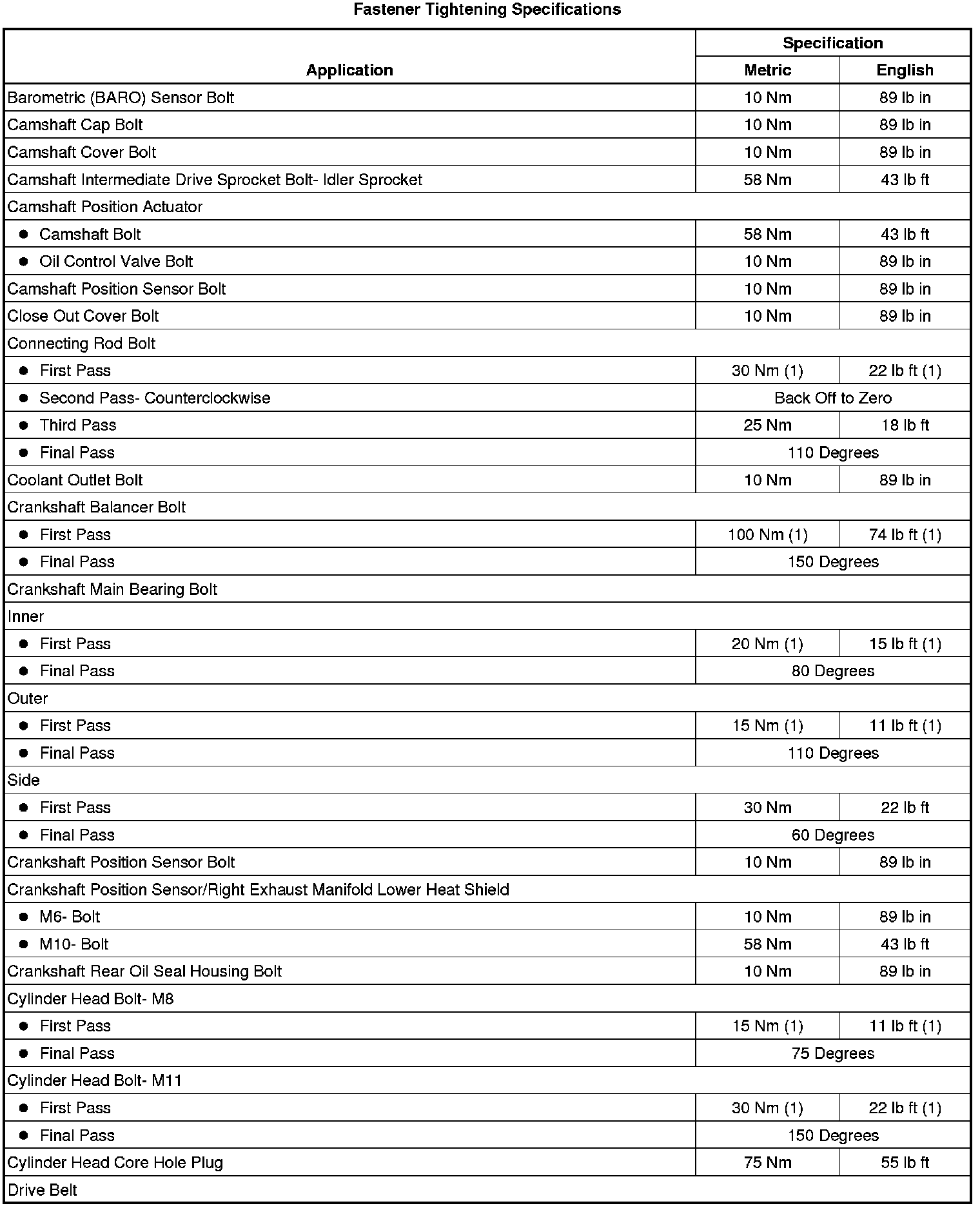 Fastener Tightening Specifications