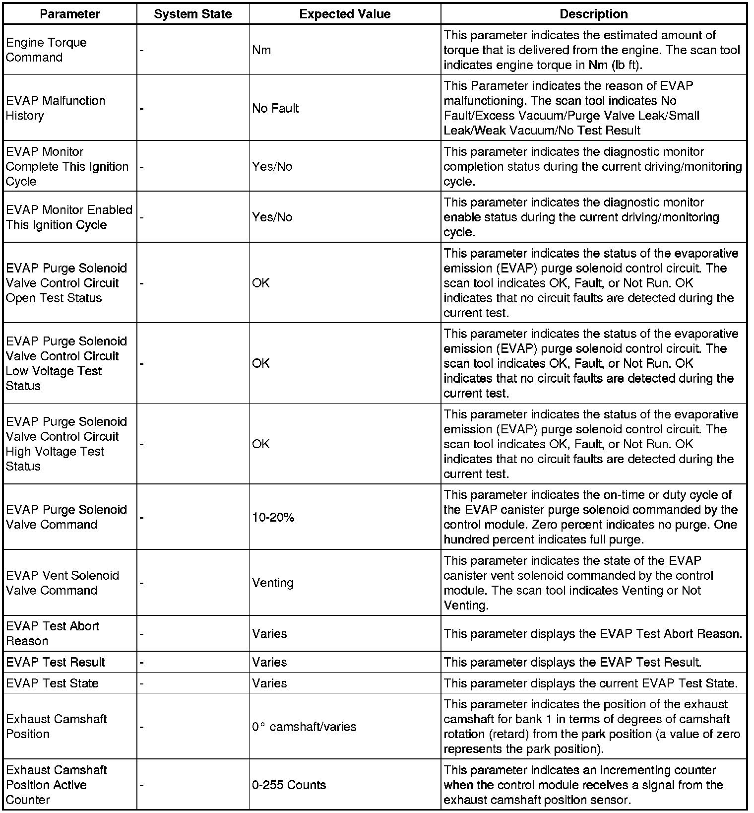 The engine control module scan tool data list contains all engine related parameters that are available on the scan tool. The list is arranged in alphabetical order. A given parameter may appear in any one of the data lists, and in some cases may appear more than once, or in more than one data list in order to group certain related parameters together.