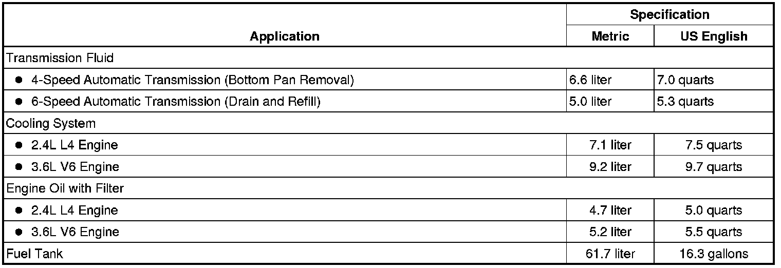 Home >> Chevrolet >> 2012 >> Malibu L4-2.4L >> Repair and Diagnosis >> Specifications >> Capacity Specifications >> Maintenance