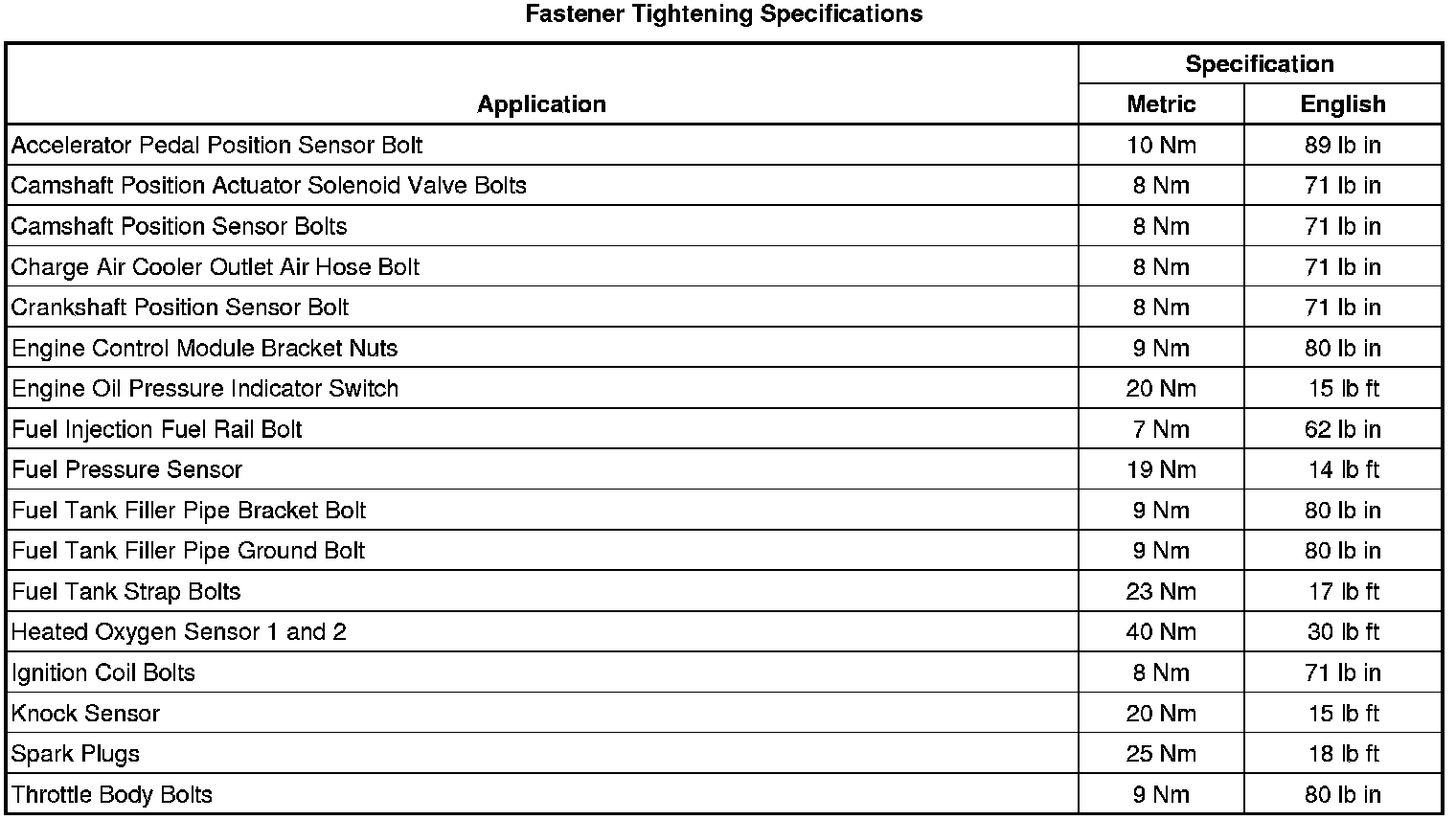 Fastener Tightening Specifications