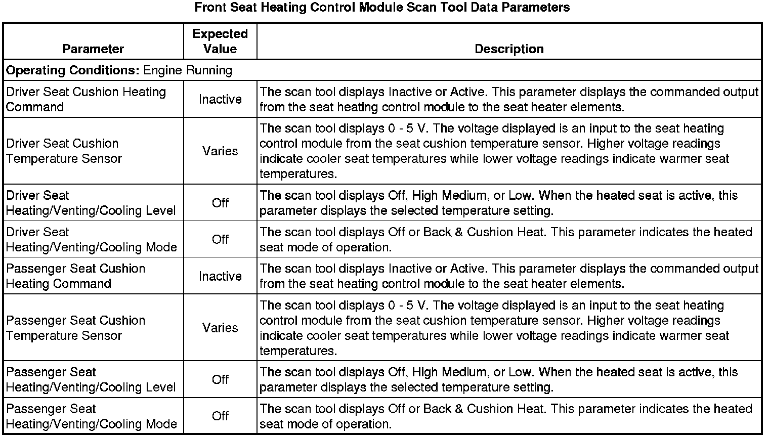 Driver Seat and Passenger Seat Heater Control Module Scan Tool Information
