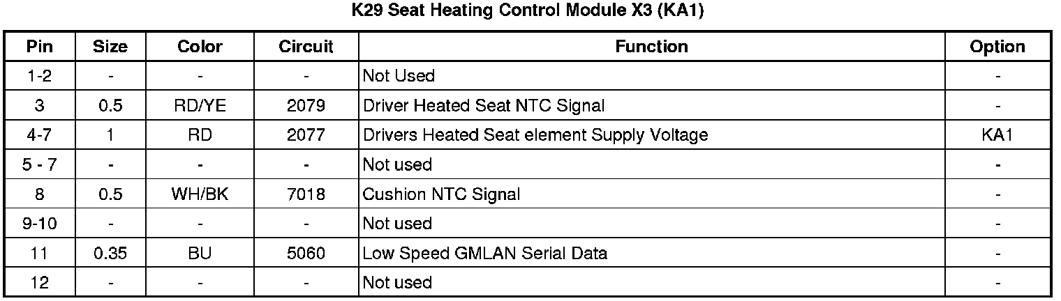 Seat Heating Control Module X3 (KA1)