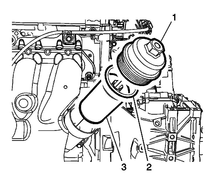 5. Install a NEW oil filter (3) and a NEW seal (2) and tighten the oil filter cap (1) to 25 Nm (18 lb ft).