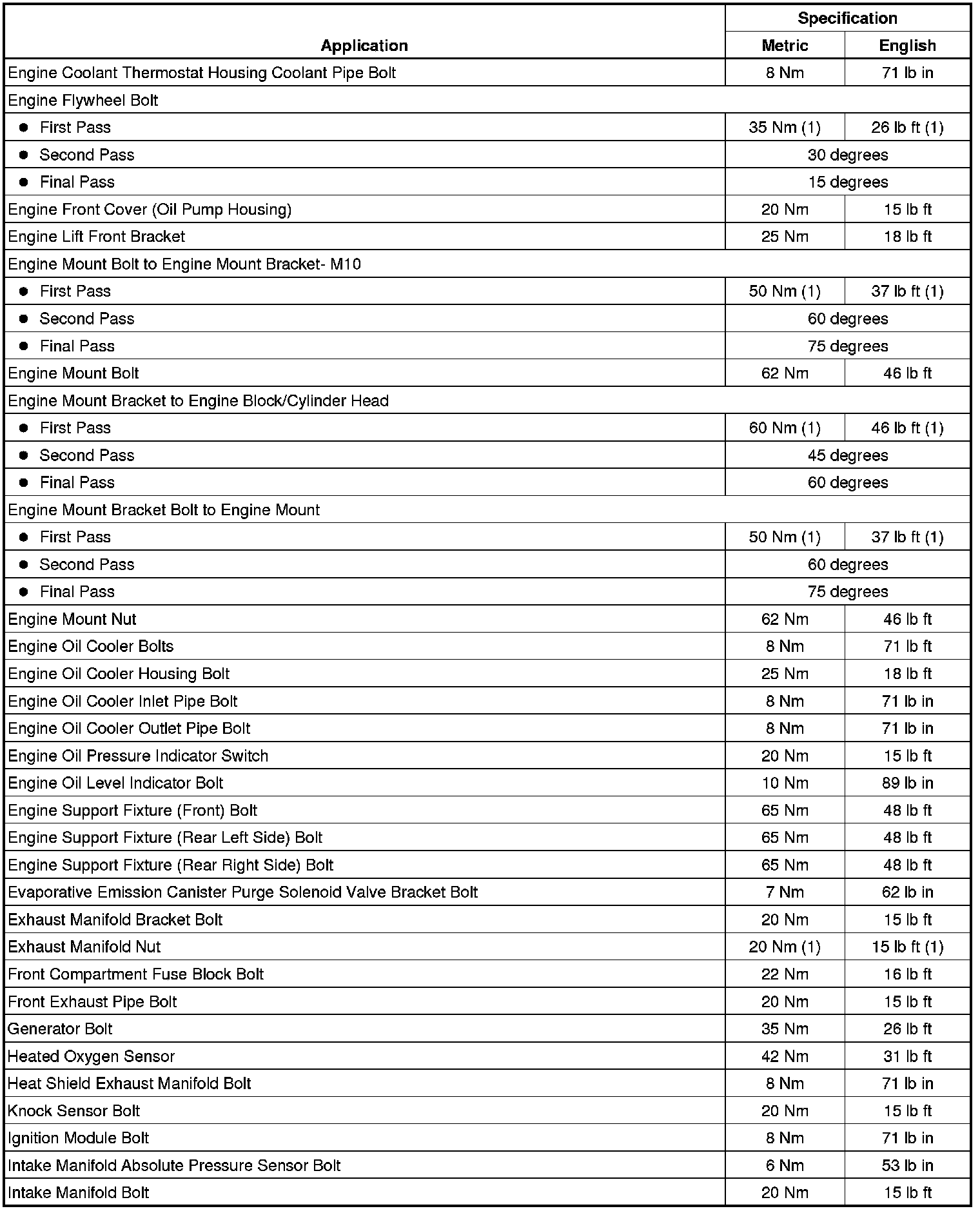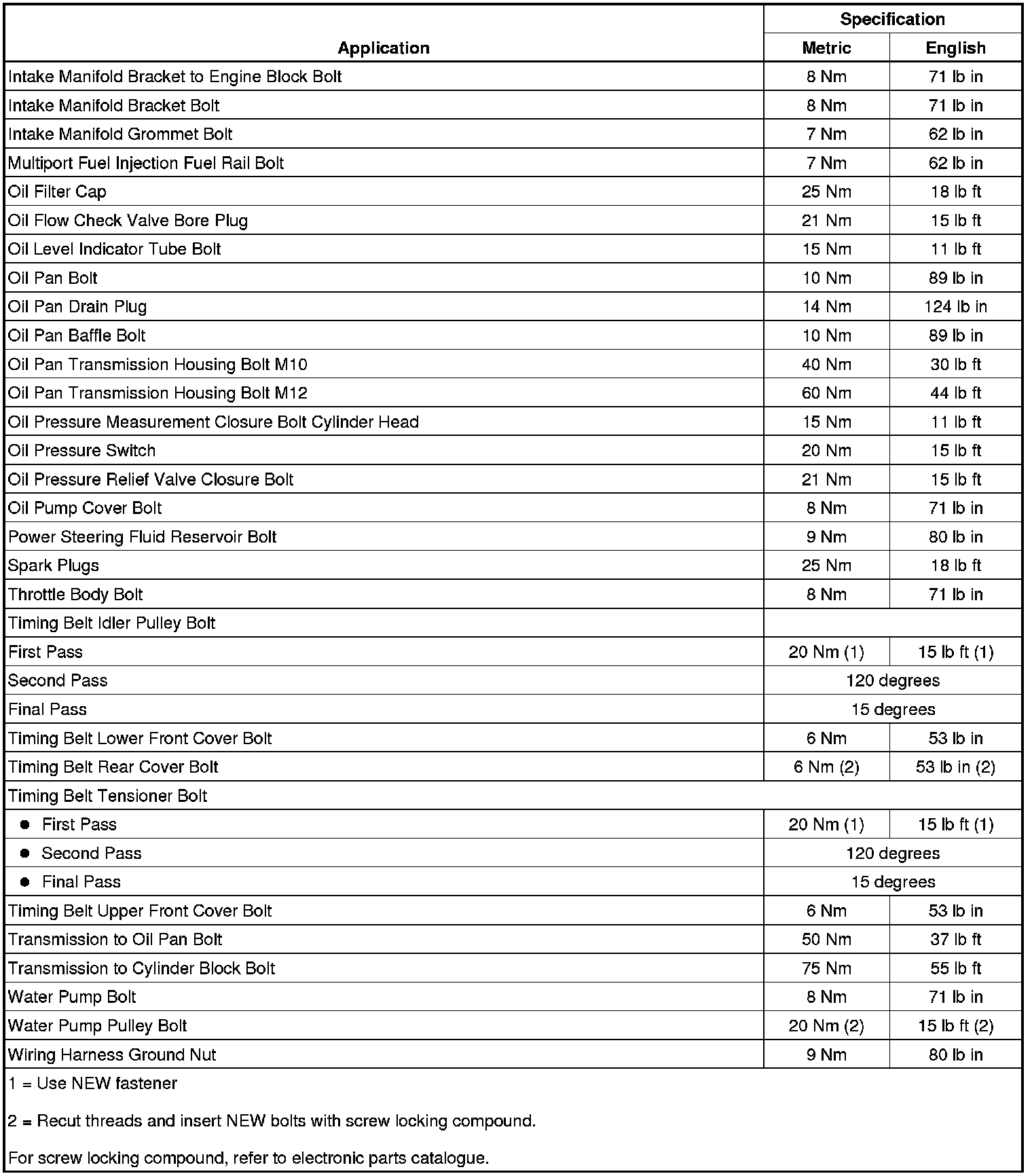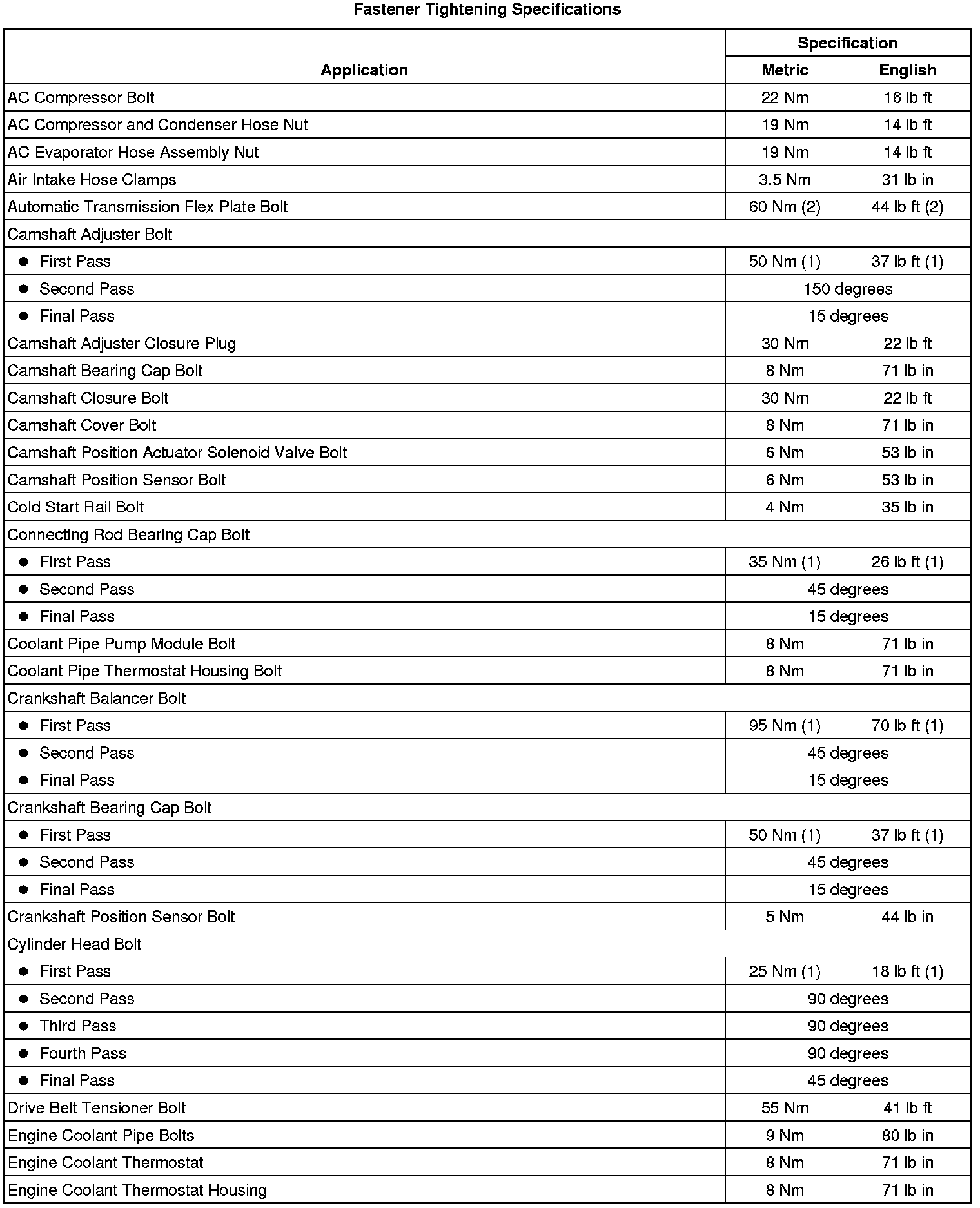 Fastener Tightening Specifications