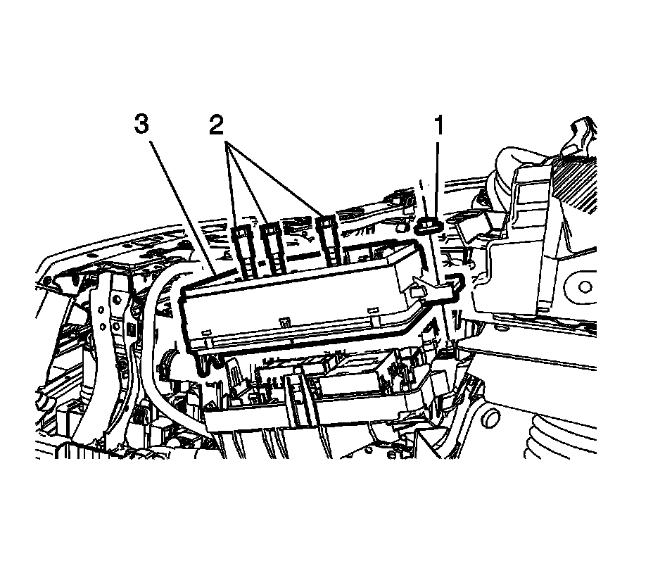 11. Remove the junction block base (2) from the inner wheelhouse.