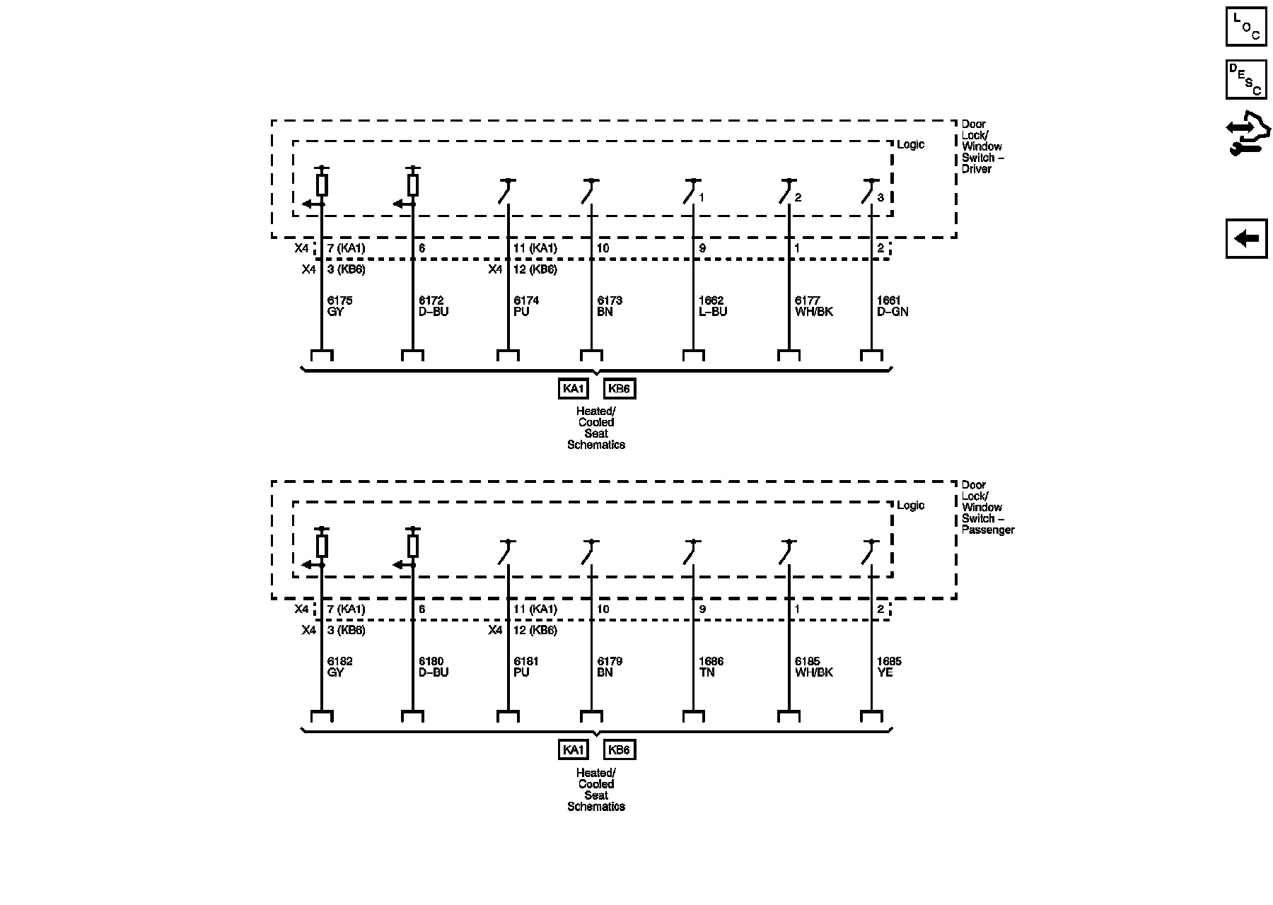 Driver Door Power, Ground, and Subsystem References (except KA1 or KB6)