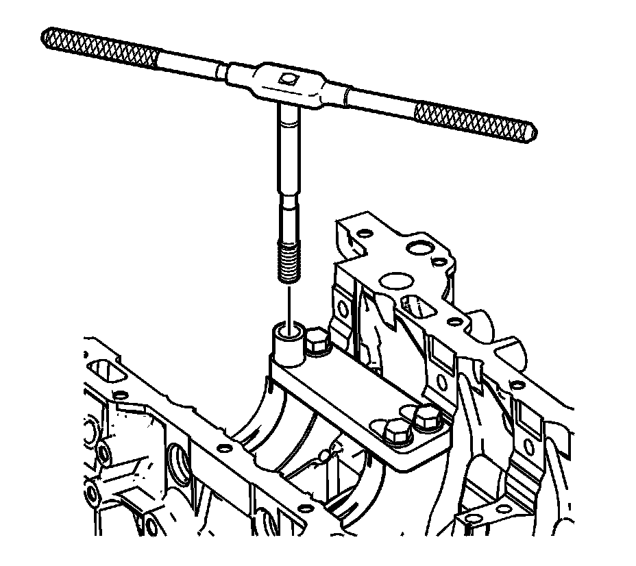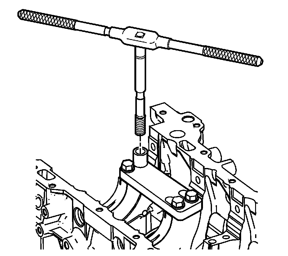 8. Using a suitable tapping wrench, tap the threads of the drilled hole by hand only.