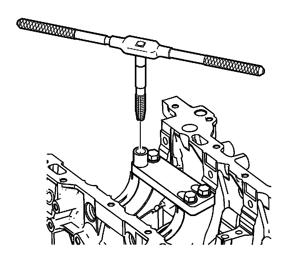 13. Spray cleaner into the tapped hole. Refer to Adhesives, Fluids, Lubricants, and Sealers Adhesives, Fluids, Lubricants, and Sealers for recommended cleaner.