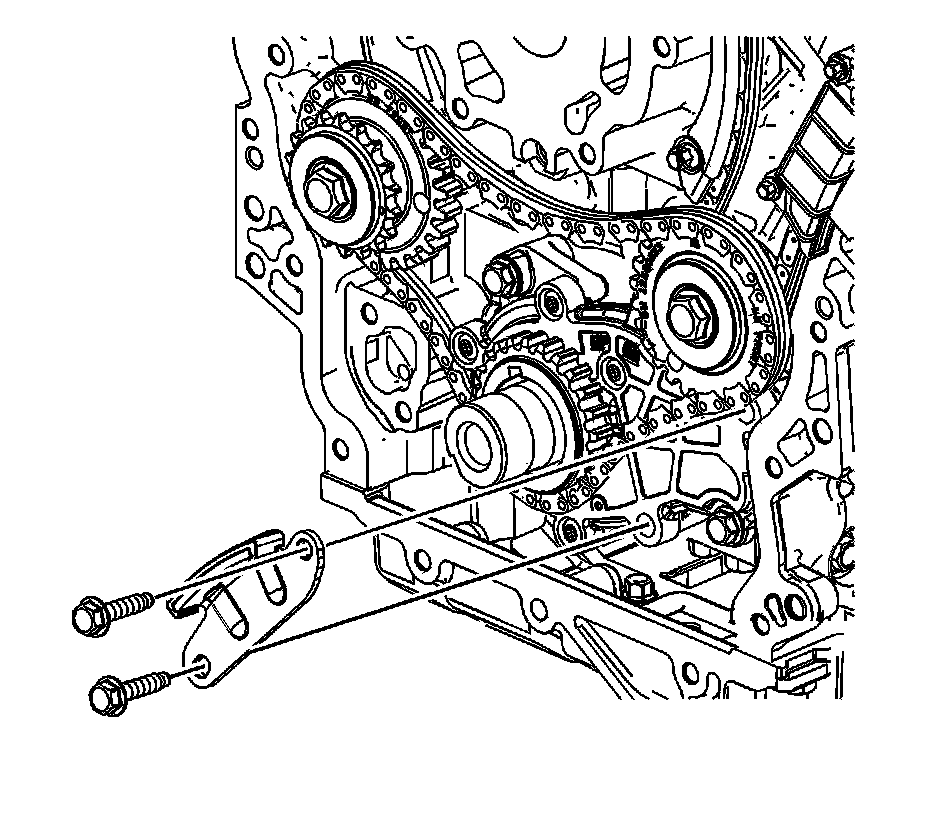 1. Remove the primary camshaft drive chain tensioner. Refer to Primary Camshaft Intermediate Drive Chain Tensioner Replacement Primary Camshaft Intermediate Drive Chain Tensioner Replacement.