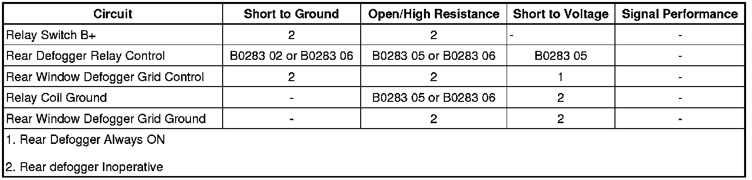 • If the defogger grid does not activate, test the control circuit for a short to ground or an open/high resistance. If the circuit tests normal, test or replace the defogger grid.
