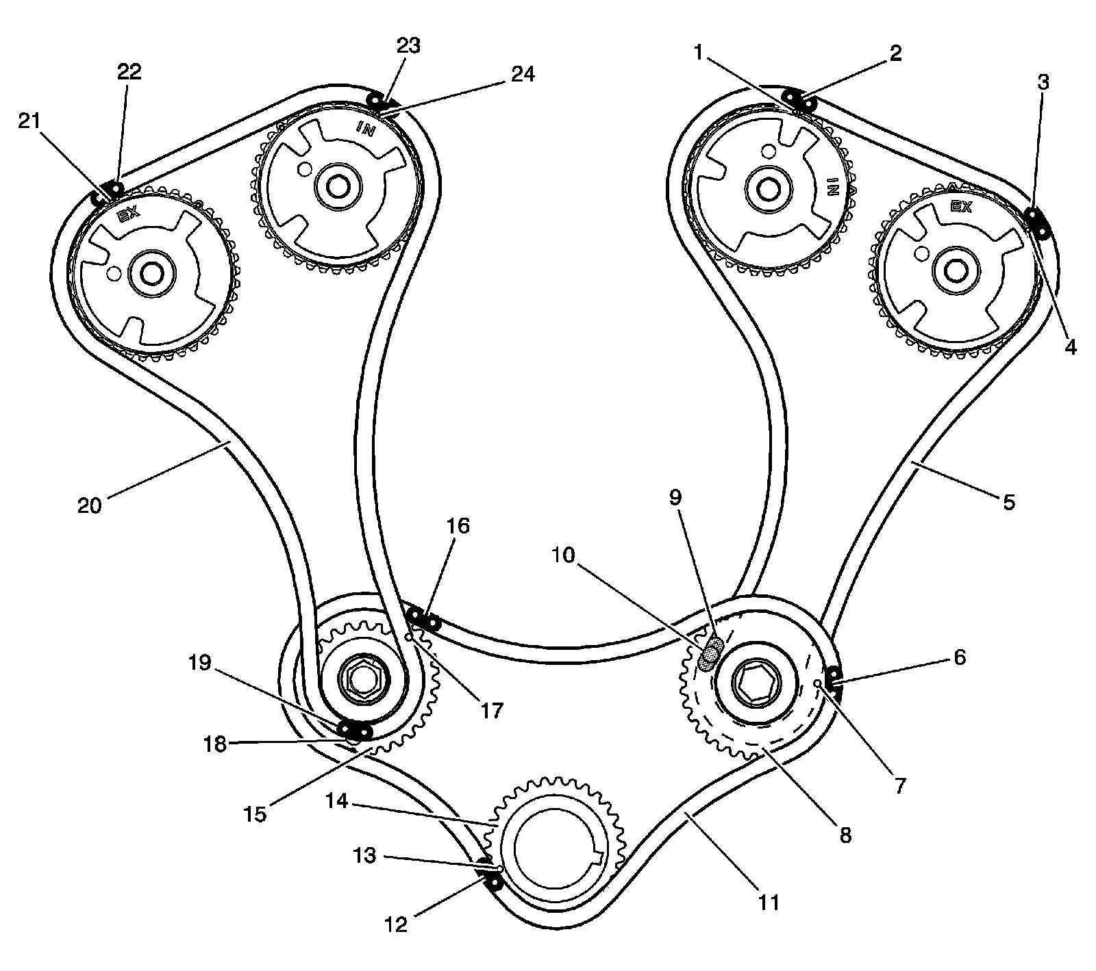 22 - Right Exhaust Secondary Camshaft Timing Drive Chain Timing Link
