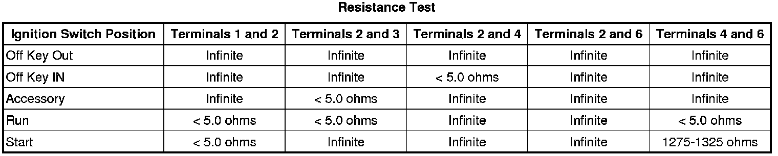 2. Verify the resistance between the terminals listed below match for each ignition switch position.