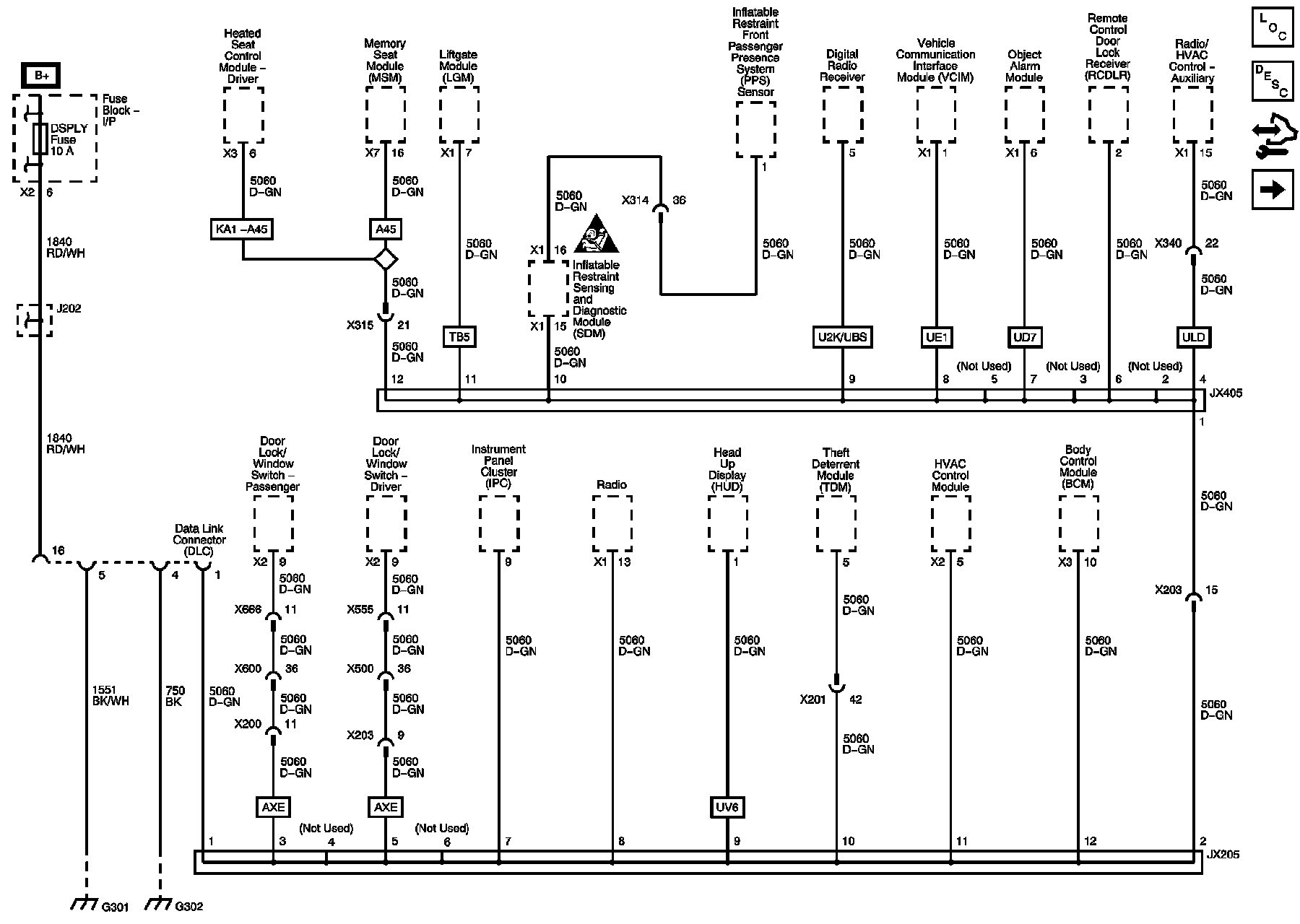DSPLY, INFOTMNT, POWER MODE, and RDO Fuses