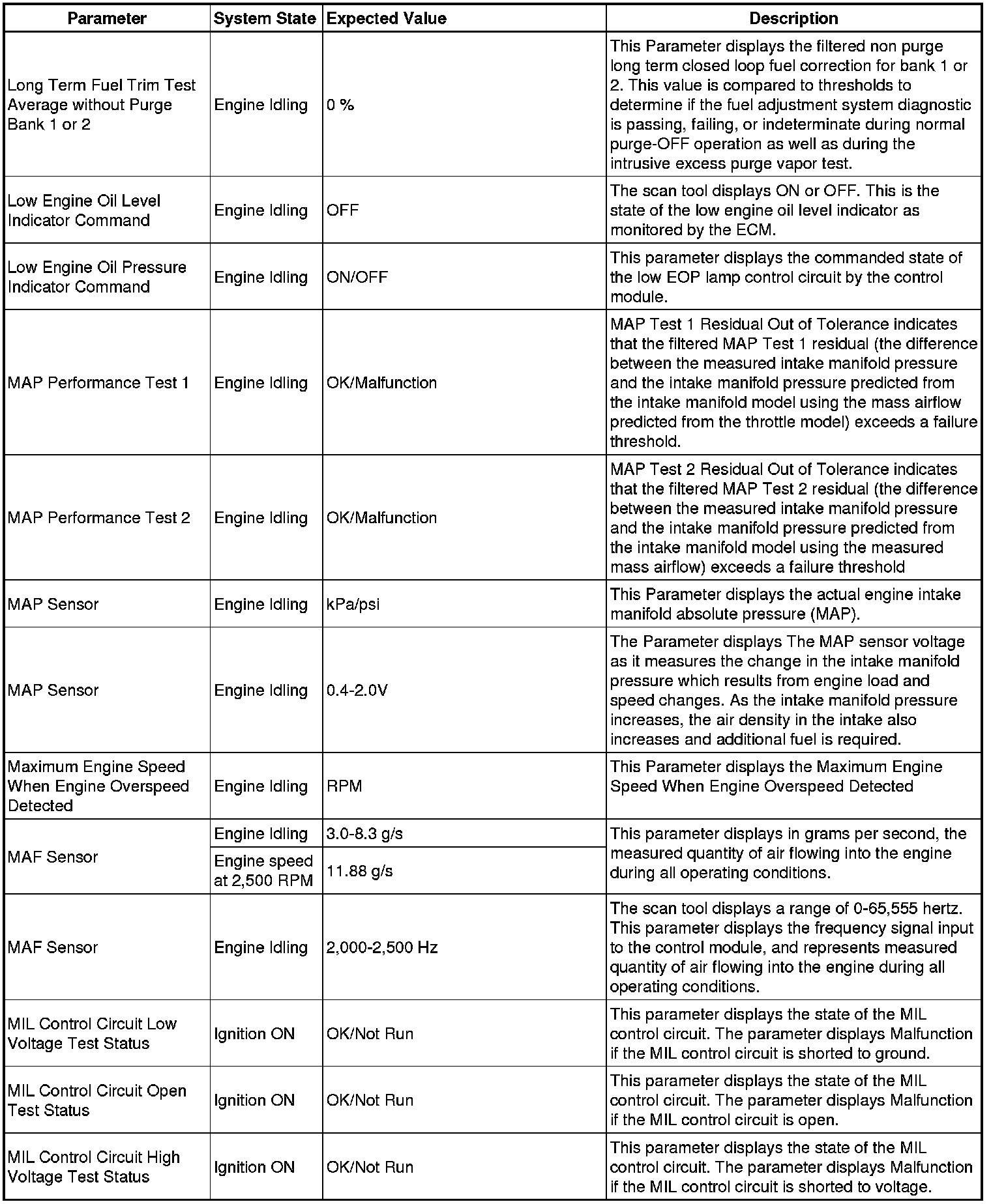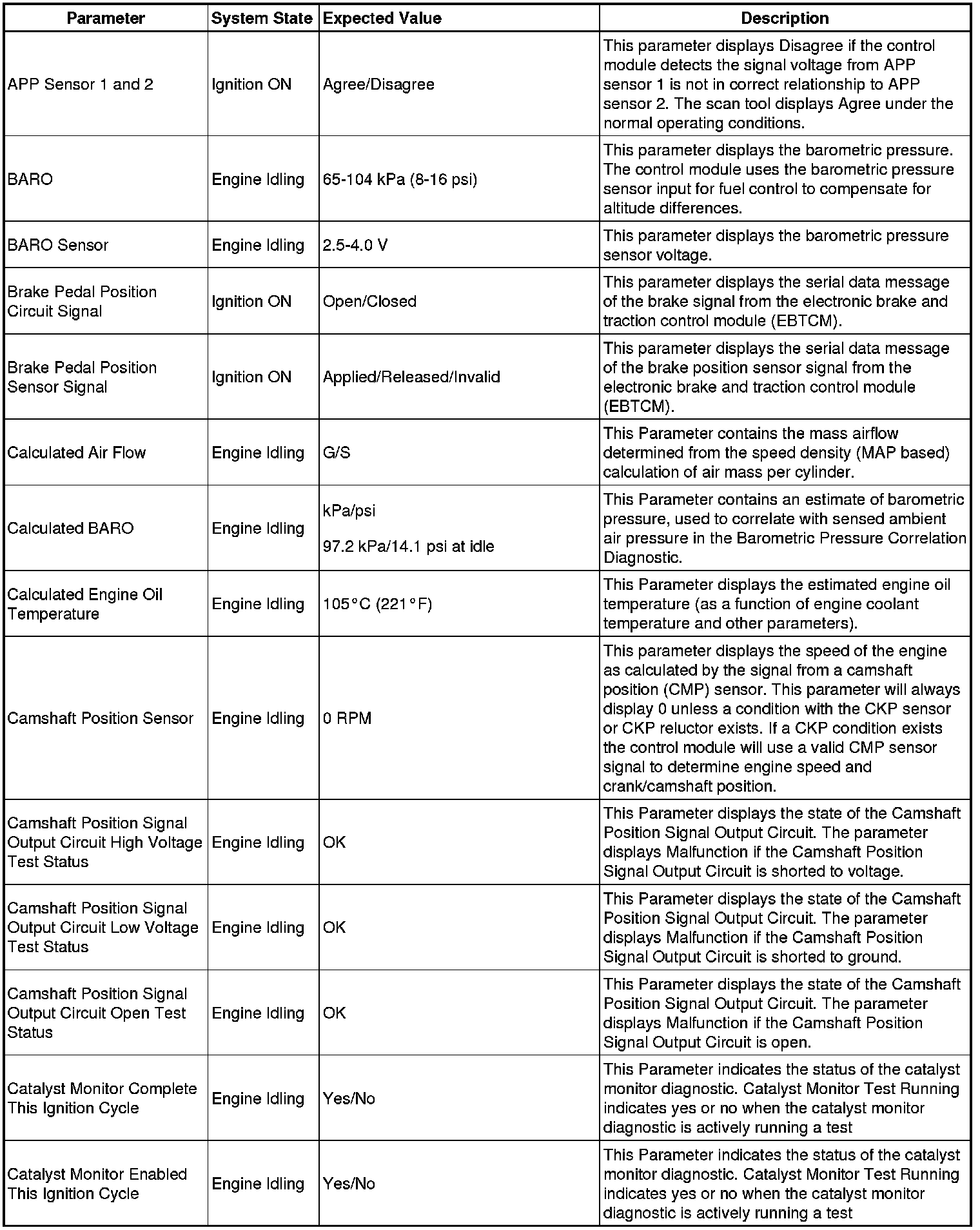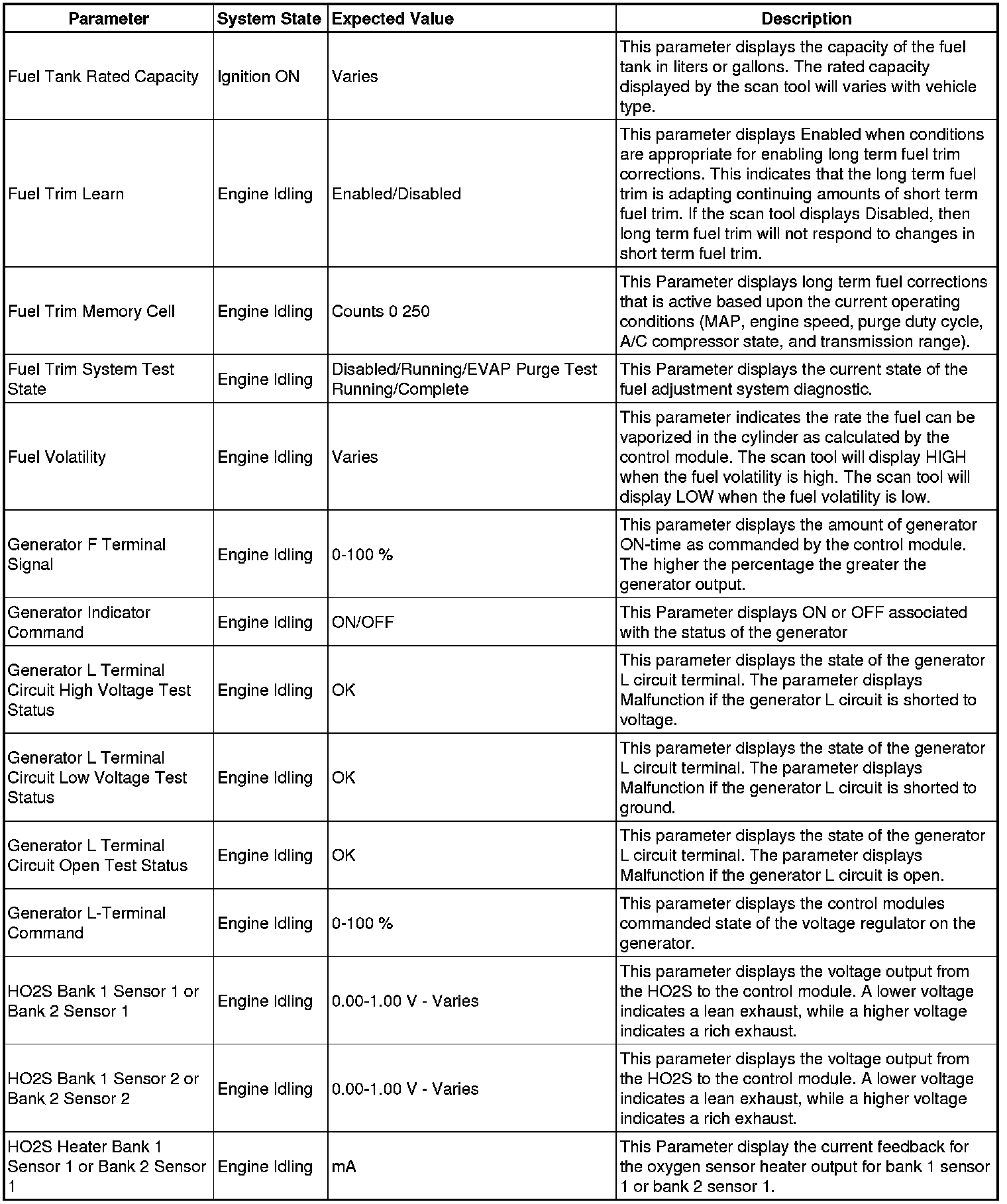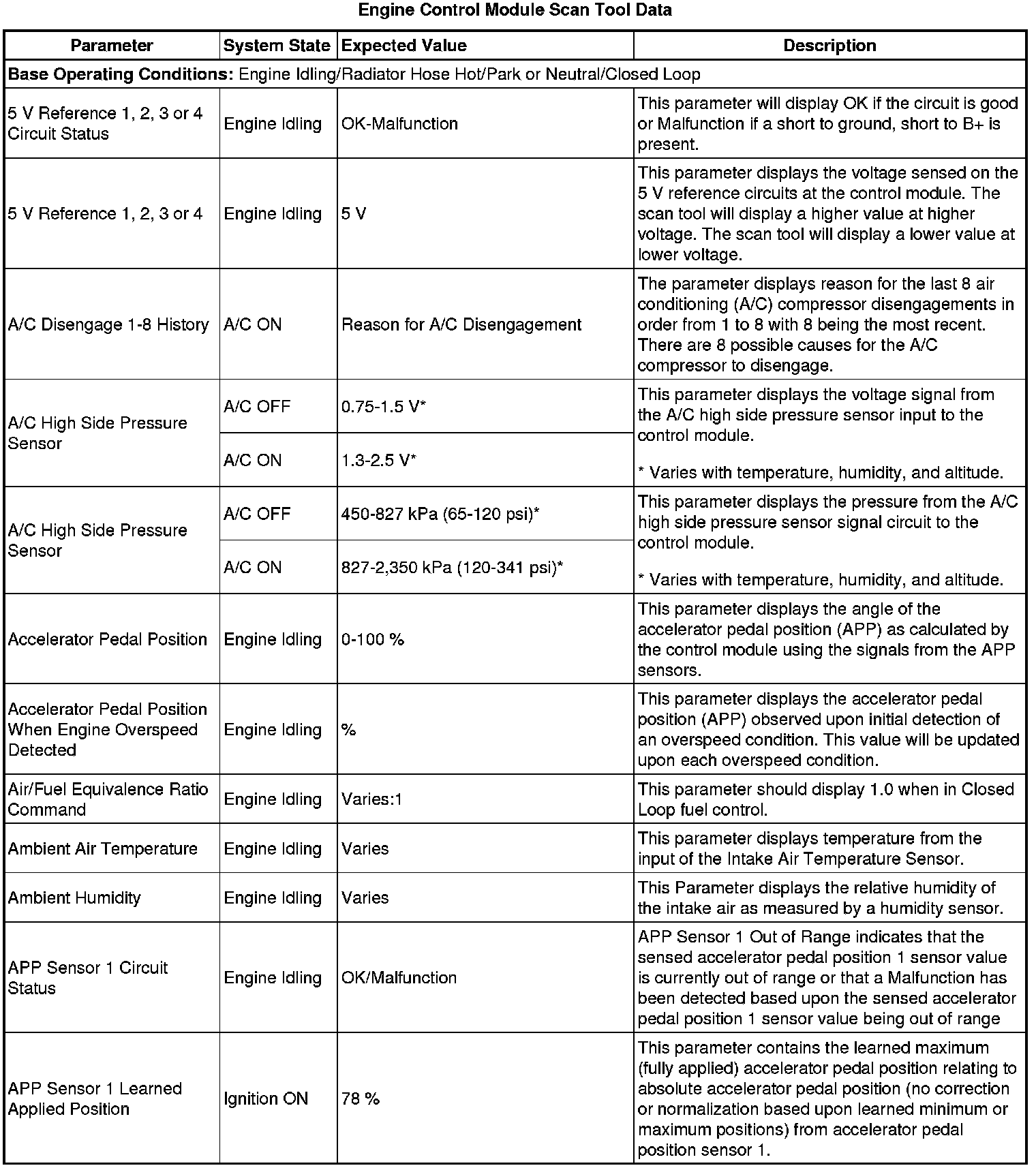 The Engine Control Module Scan Tool Data List contains all engine-related parameters that are available on the scan tool. The list is arranged in alphabetical order. A given parameter may appear in any one of the data lists, and in some cases may appear more than once, or in more than one data list in order to group certain related parameters together.