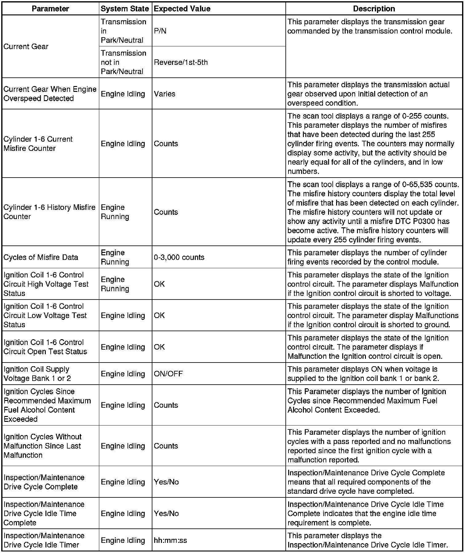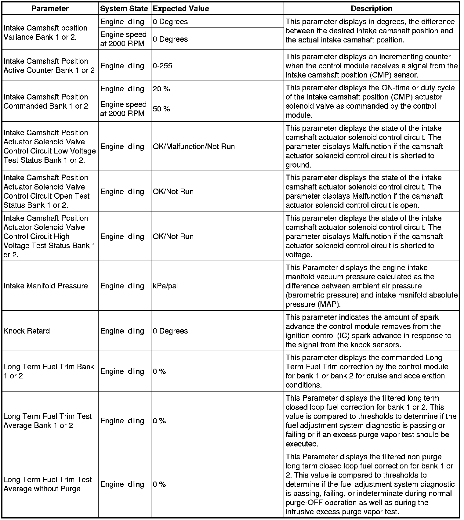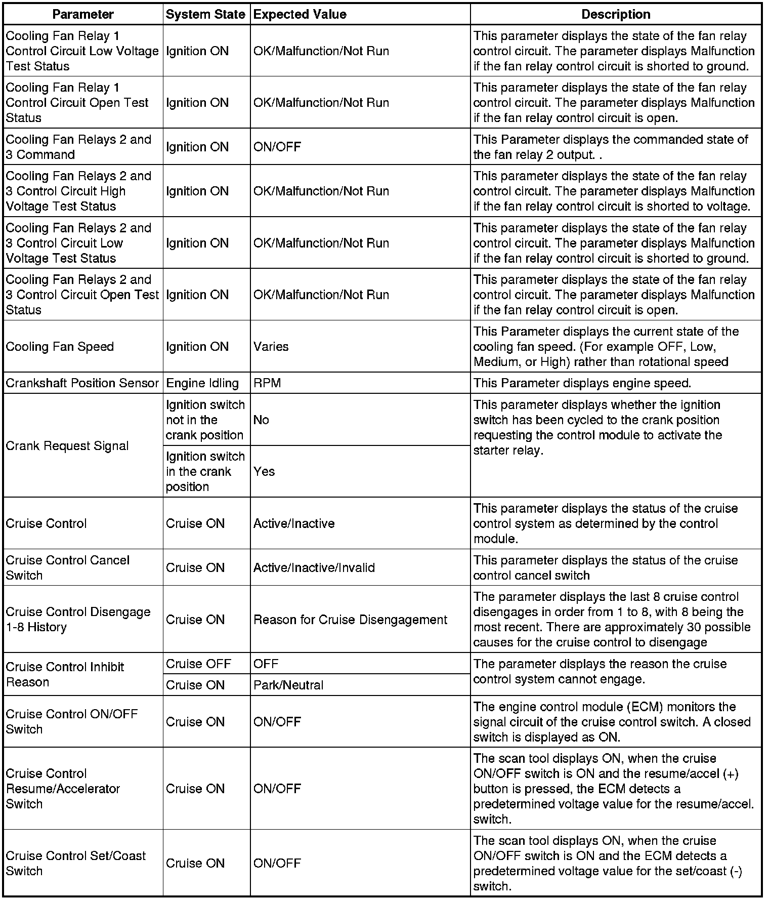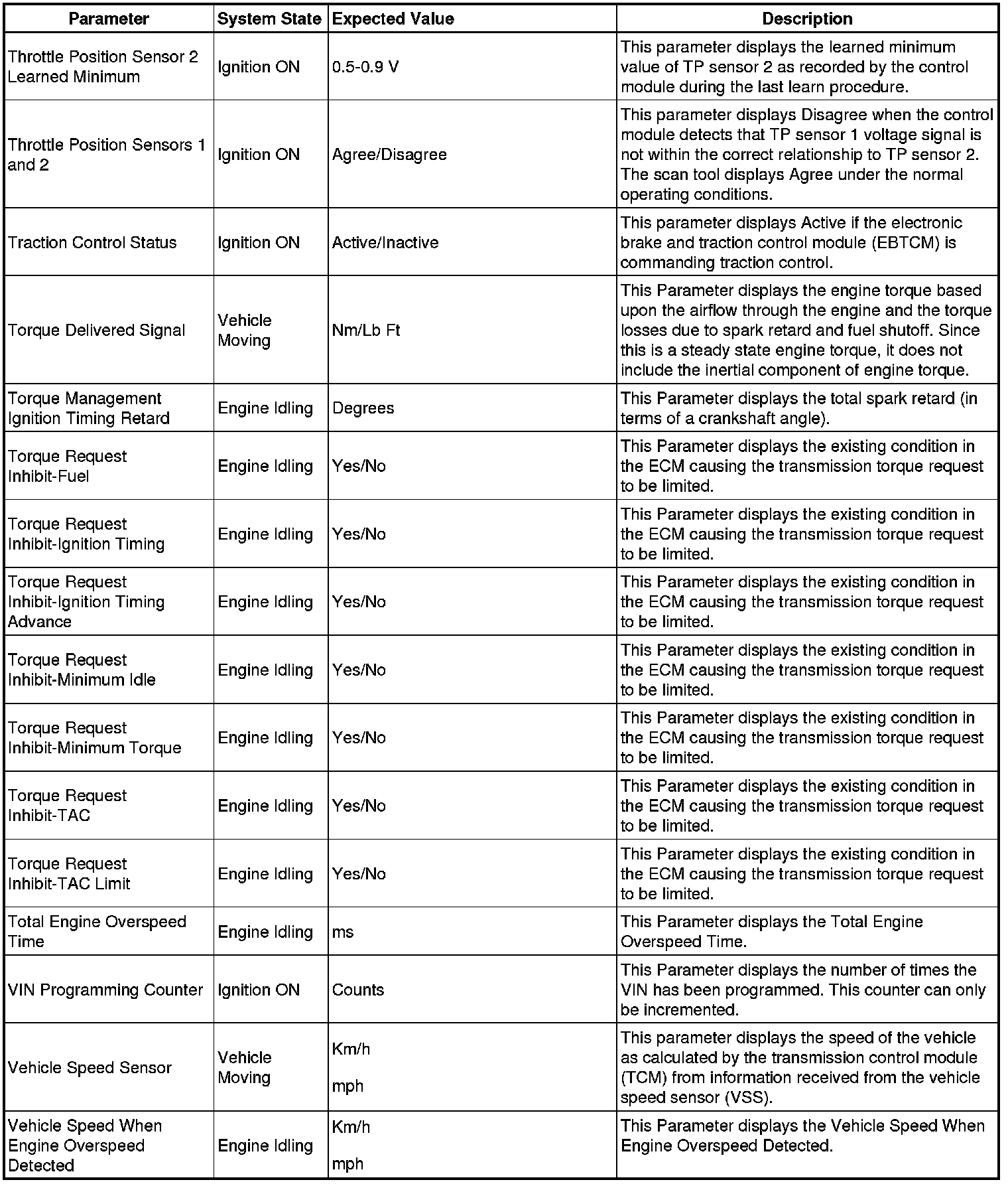 The Engine Control Module Scan Tool Data List contains all engine-related parameters that are available on the scan tool. The list is arranged in alphabetical order. A given parameter may appear in any one of the data lists, and in some cases may appear more than once, or in more than one data list in order to group certain related parameters together.