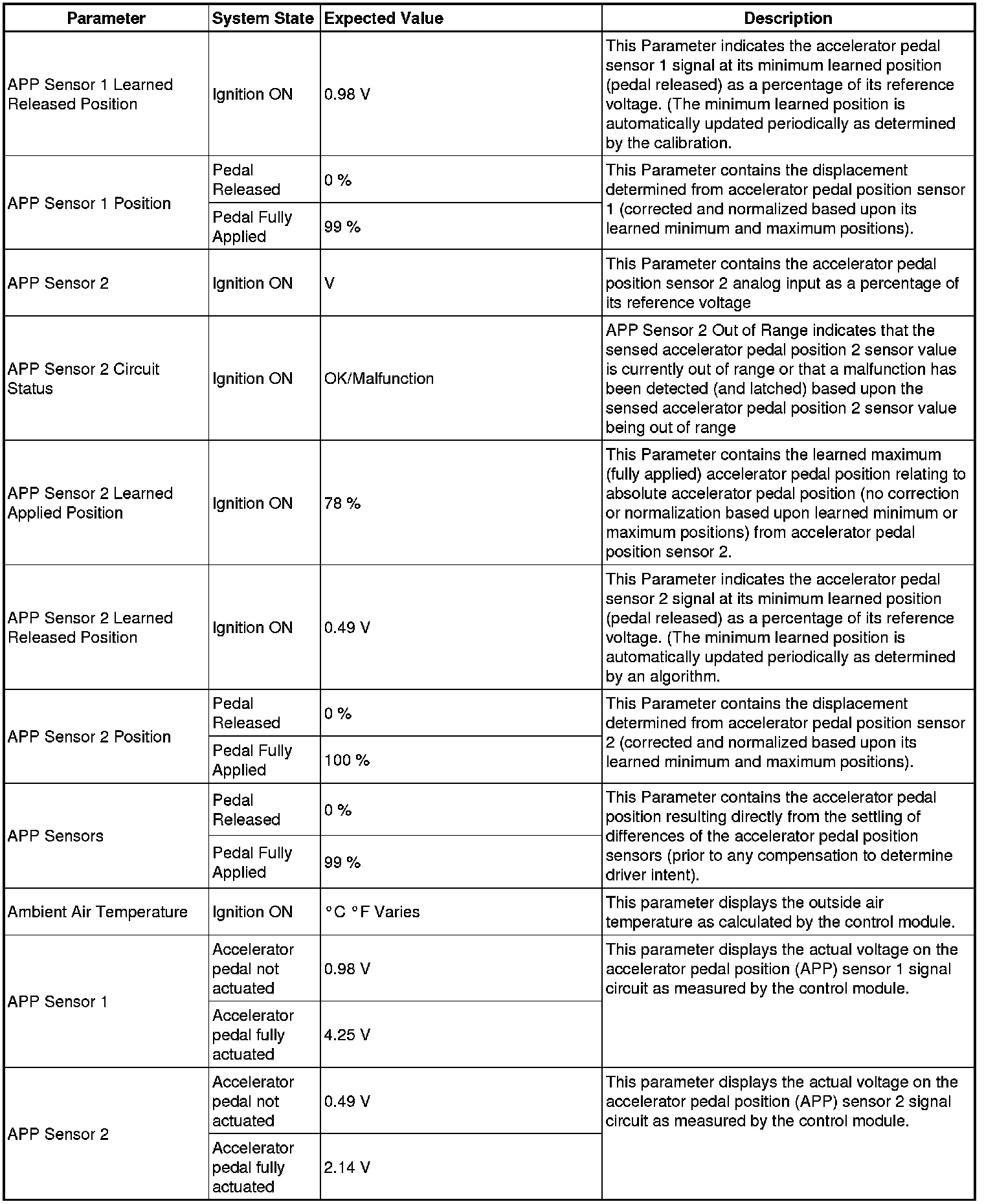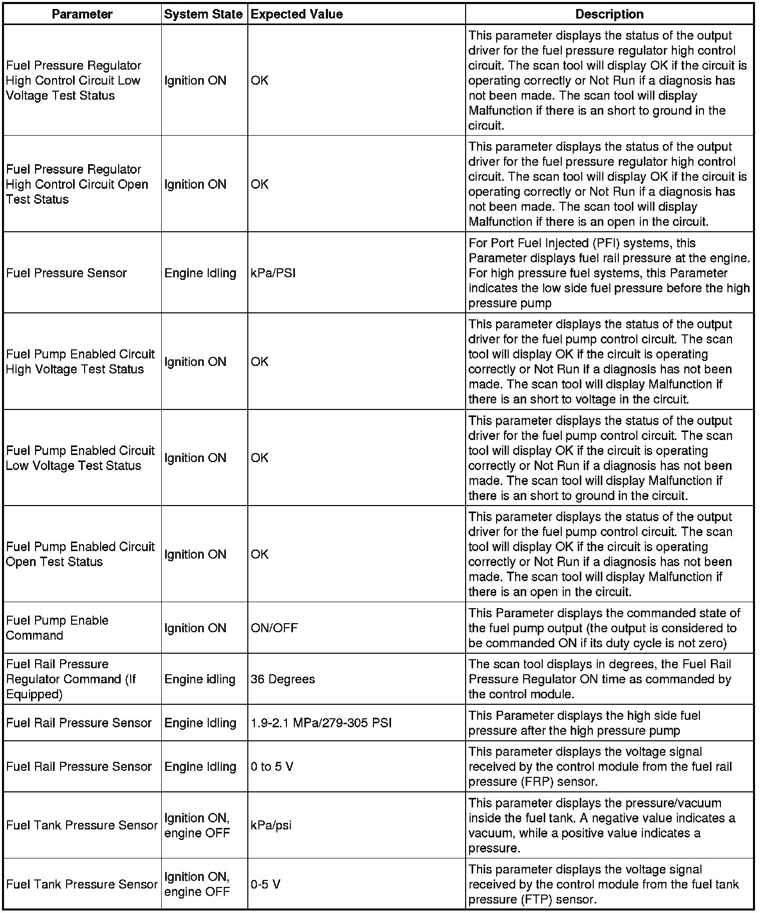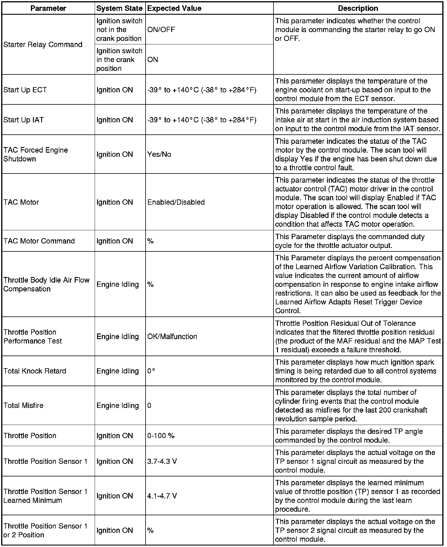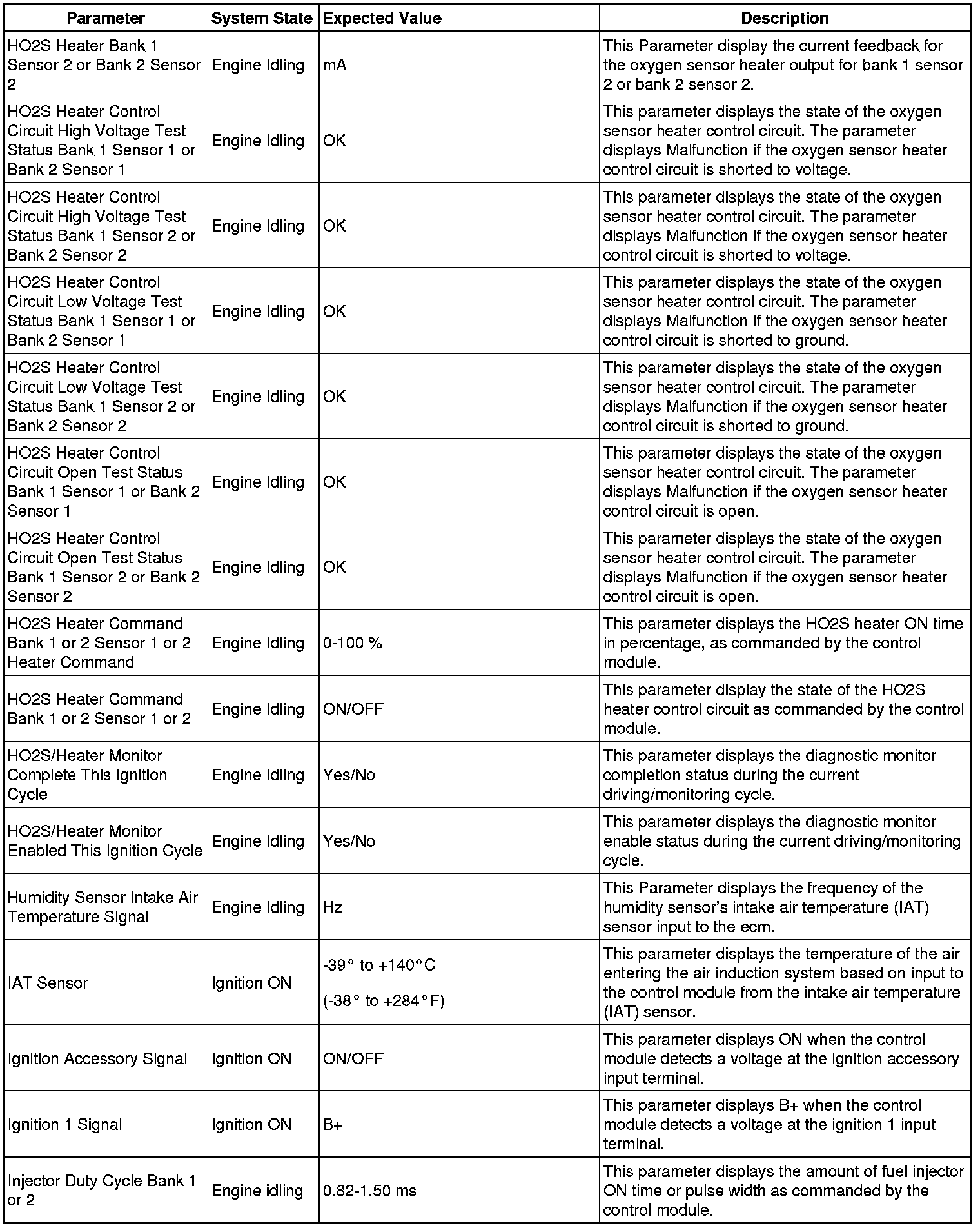 The Engine Control Module Scan Tool Data List contains all engine-related parameters that are available on the scan tool. The list is arranged in alphabetical order. A given parameter may appear in any one of the data lists, and in some cases may appear more than once, or in more than one data list in order to group certain related parameters together.