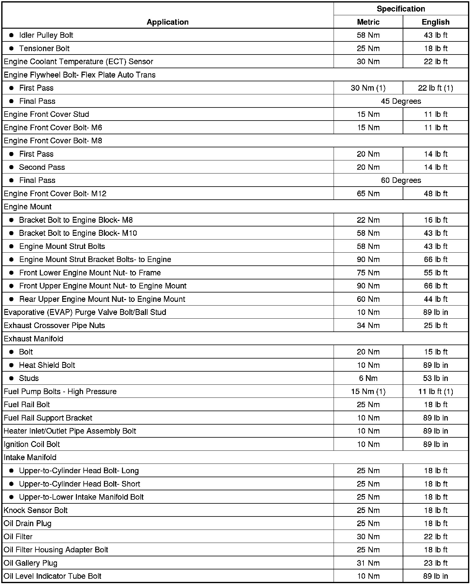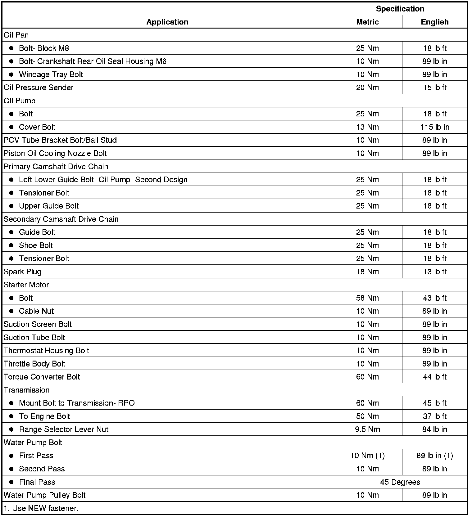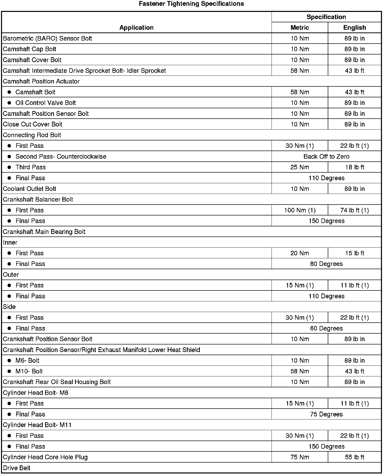 Fastener Tightening Specifications