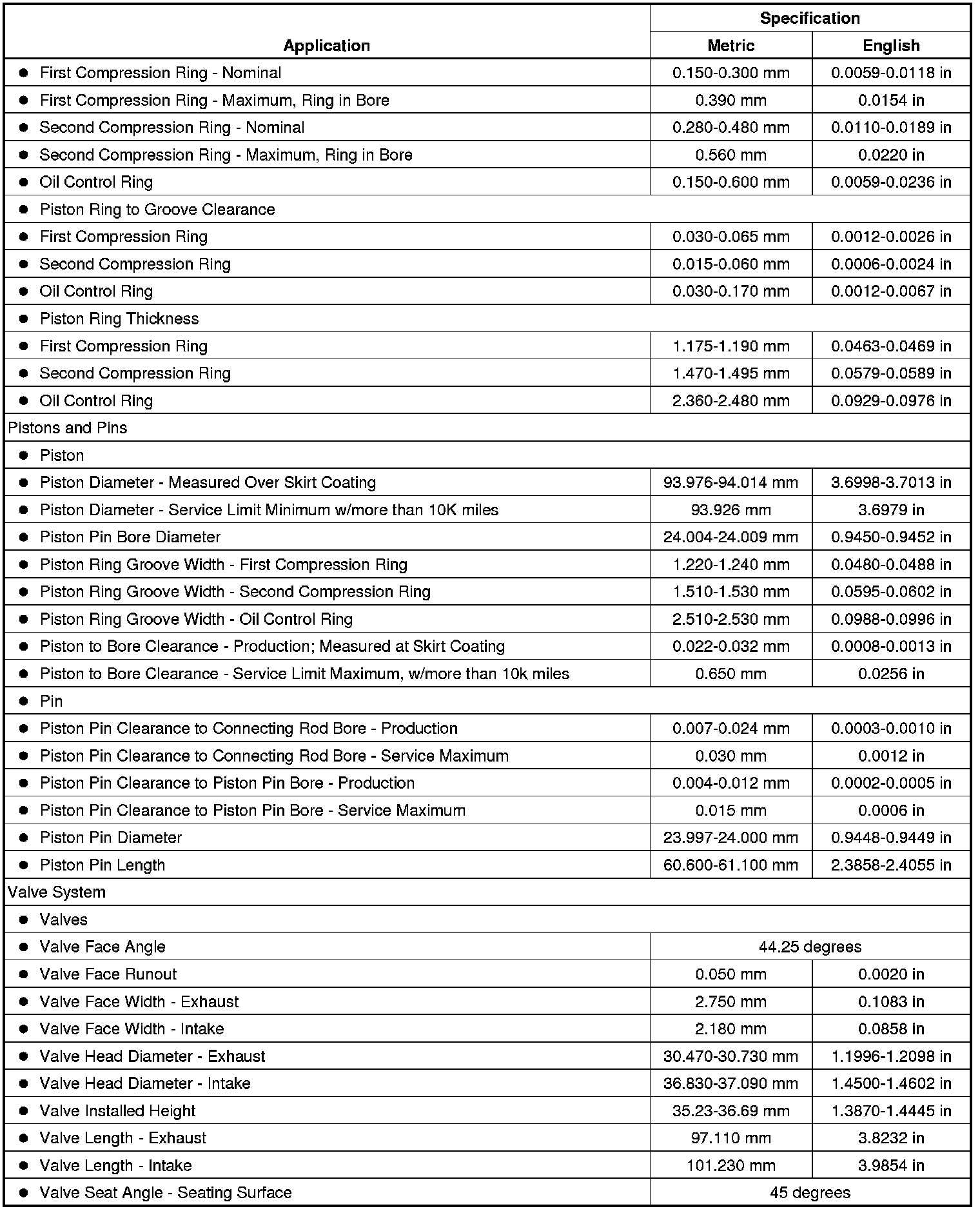 Engine Mechanical Specifications (LLT)