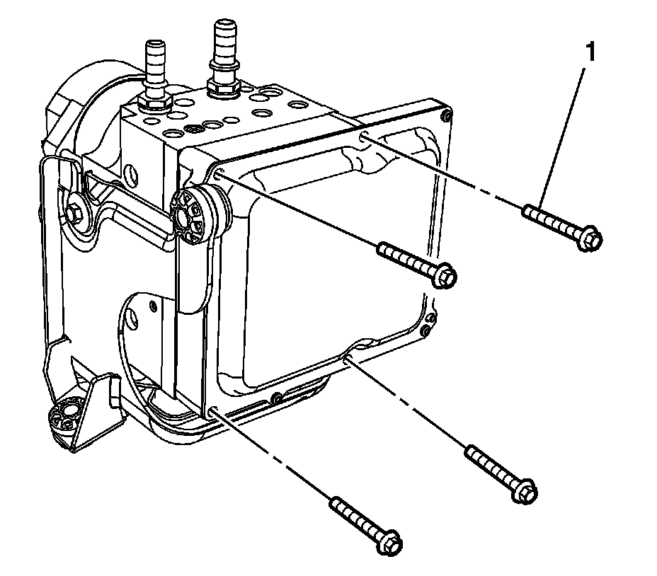 3. Install the EBCM bolts (1) and tighten to 3 Nm (27 lb in).