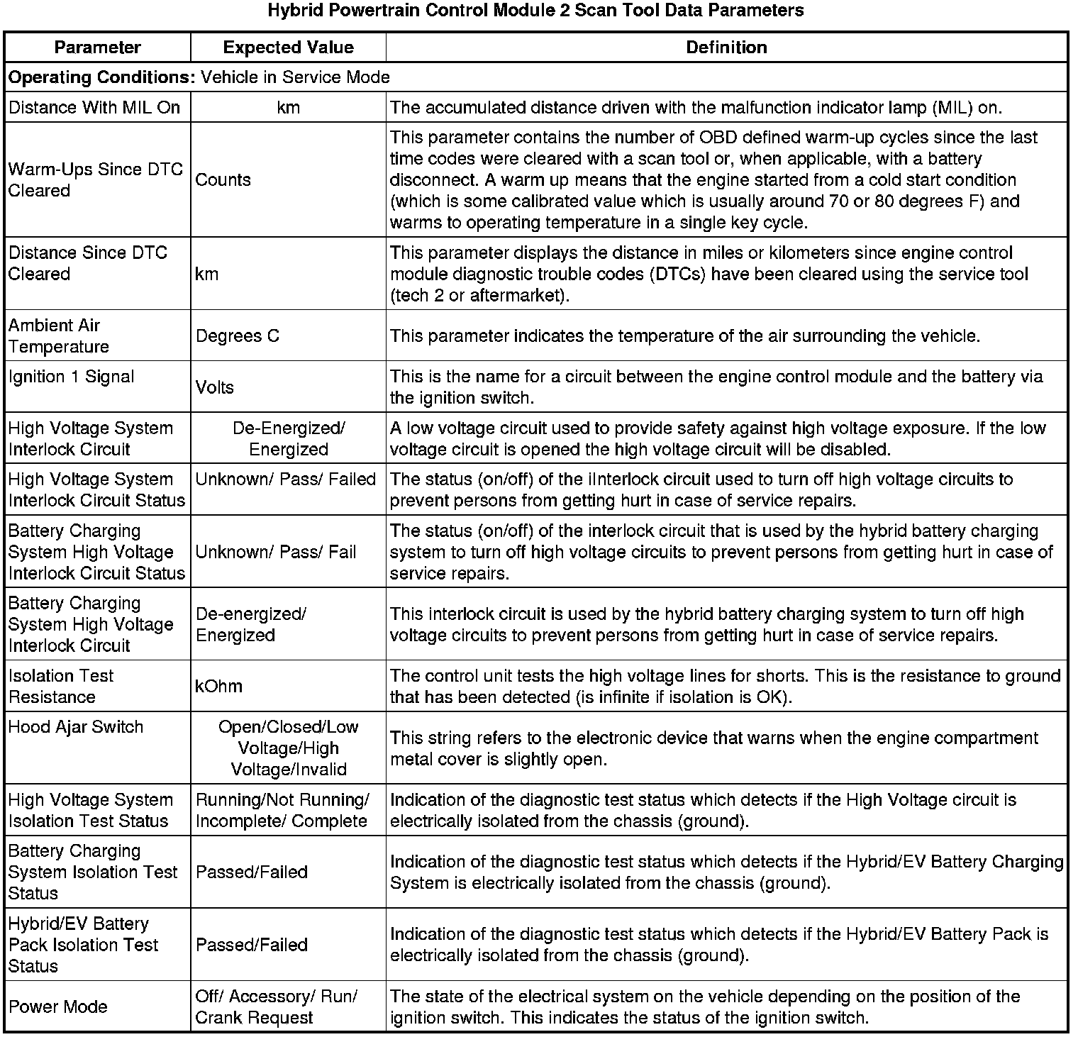 Hybrid Powertrain Control Module 2 Scan Tool Information