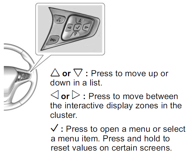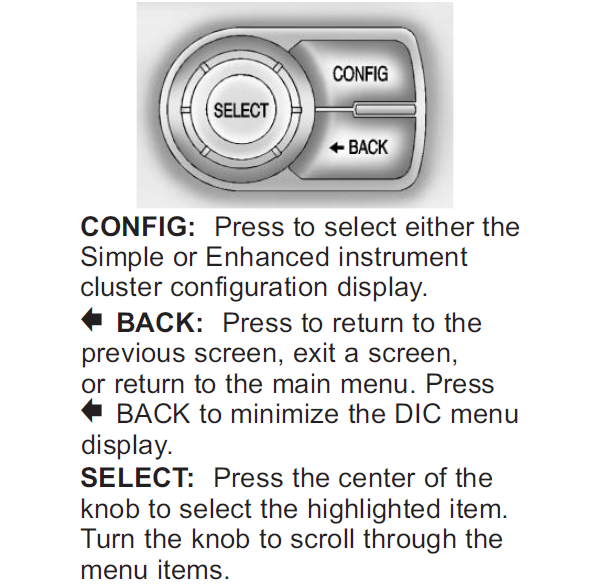 - Use the DIC controls on the right side of the steering wheel to scroll to the Tire Pressure screen under the DIC info page. See Fig 2.