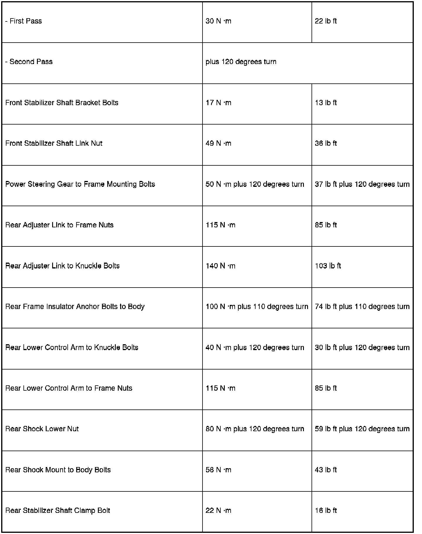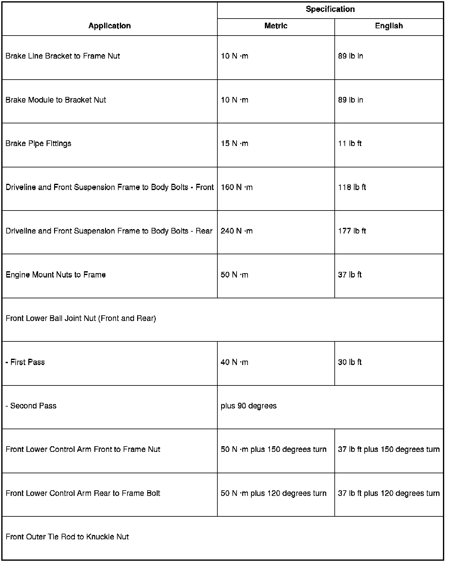 Fastener Tightening Specifications