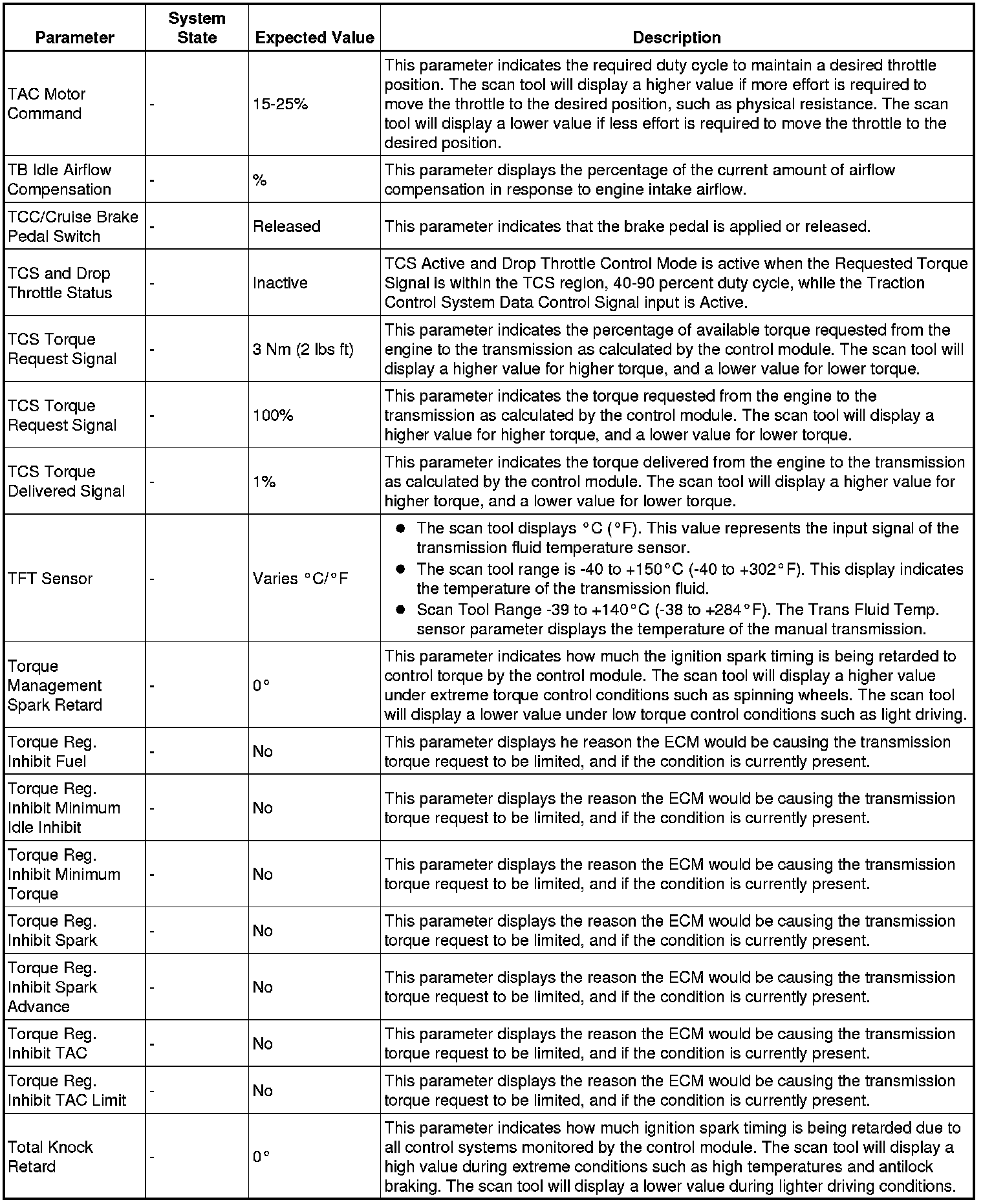Only the parameters listed below are referenced in this service manual for use in diagnosis.