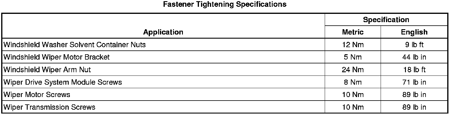 Wiper and Washer Systems: Specifications