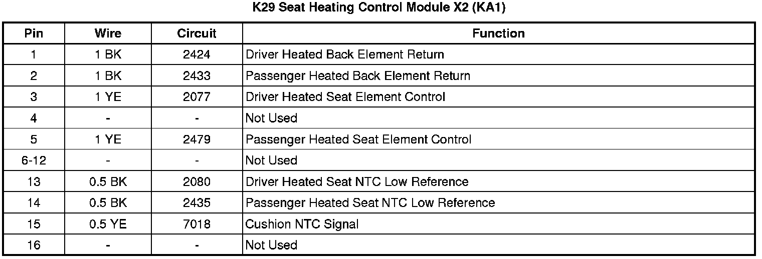 Seat Heating Control Module X2 (KA1)