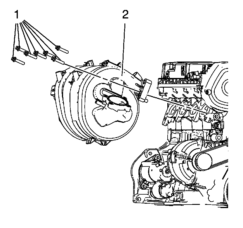 (2) and the 7 intake manifold bolts (1) and tighten to 20 Nm (15 lb ft).