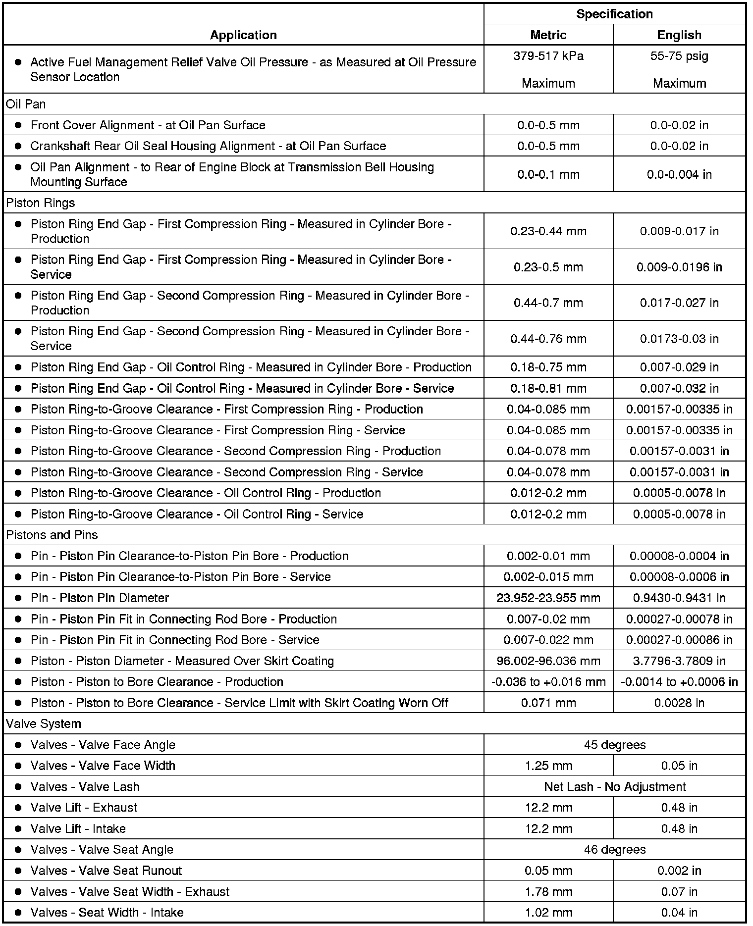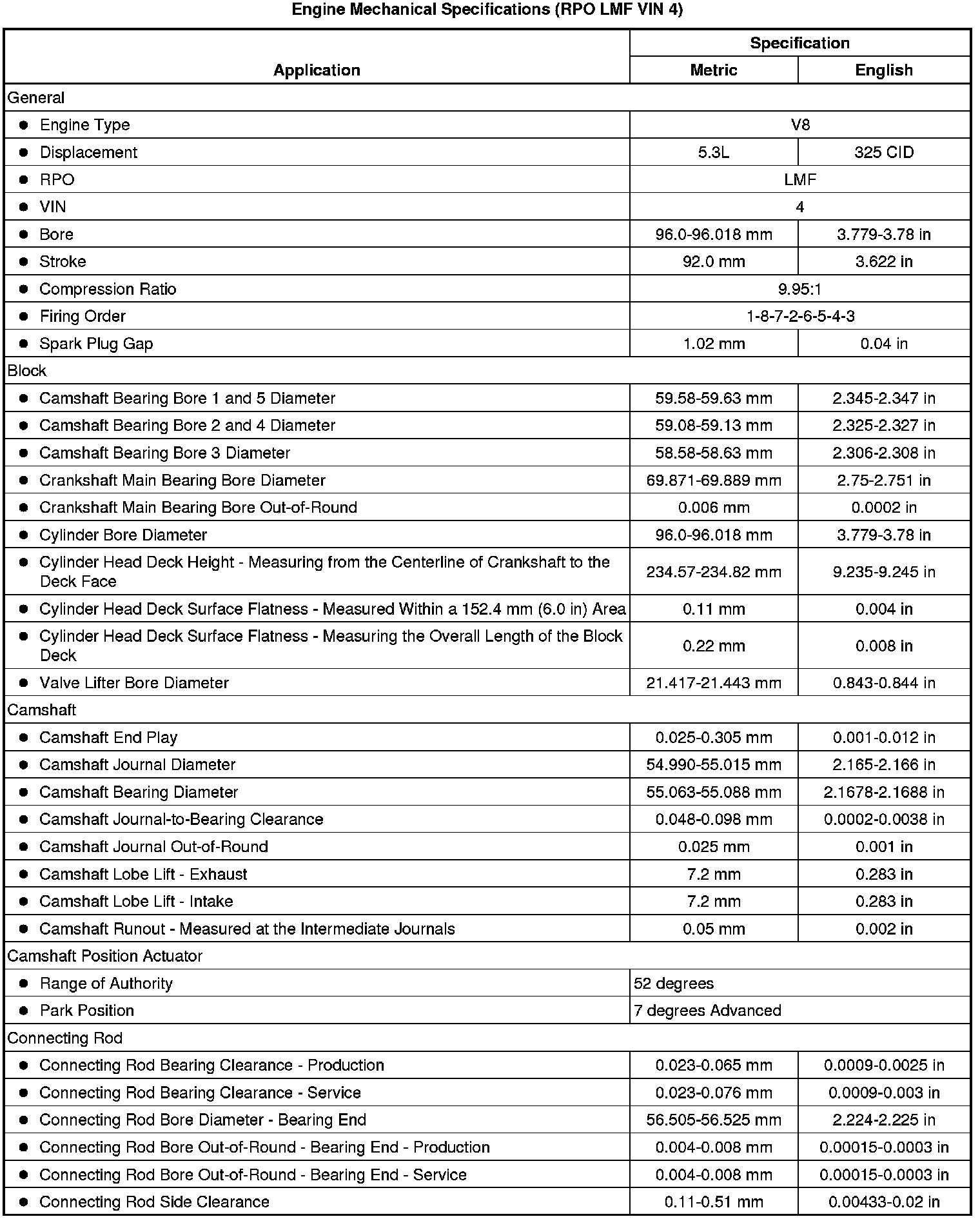 Engine Mechanical Specifications (RPO LMF VIN 4)