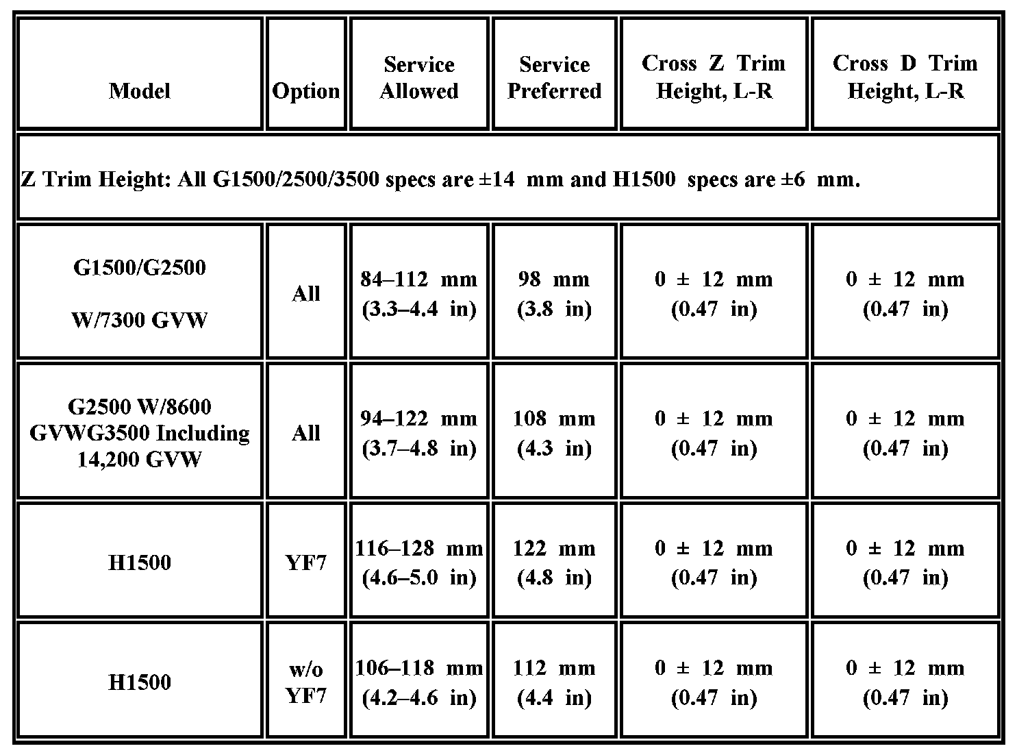 Trim Height Specifications