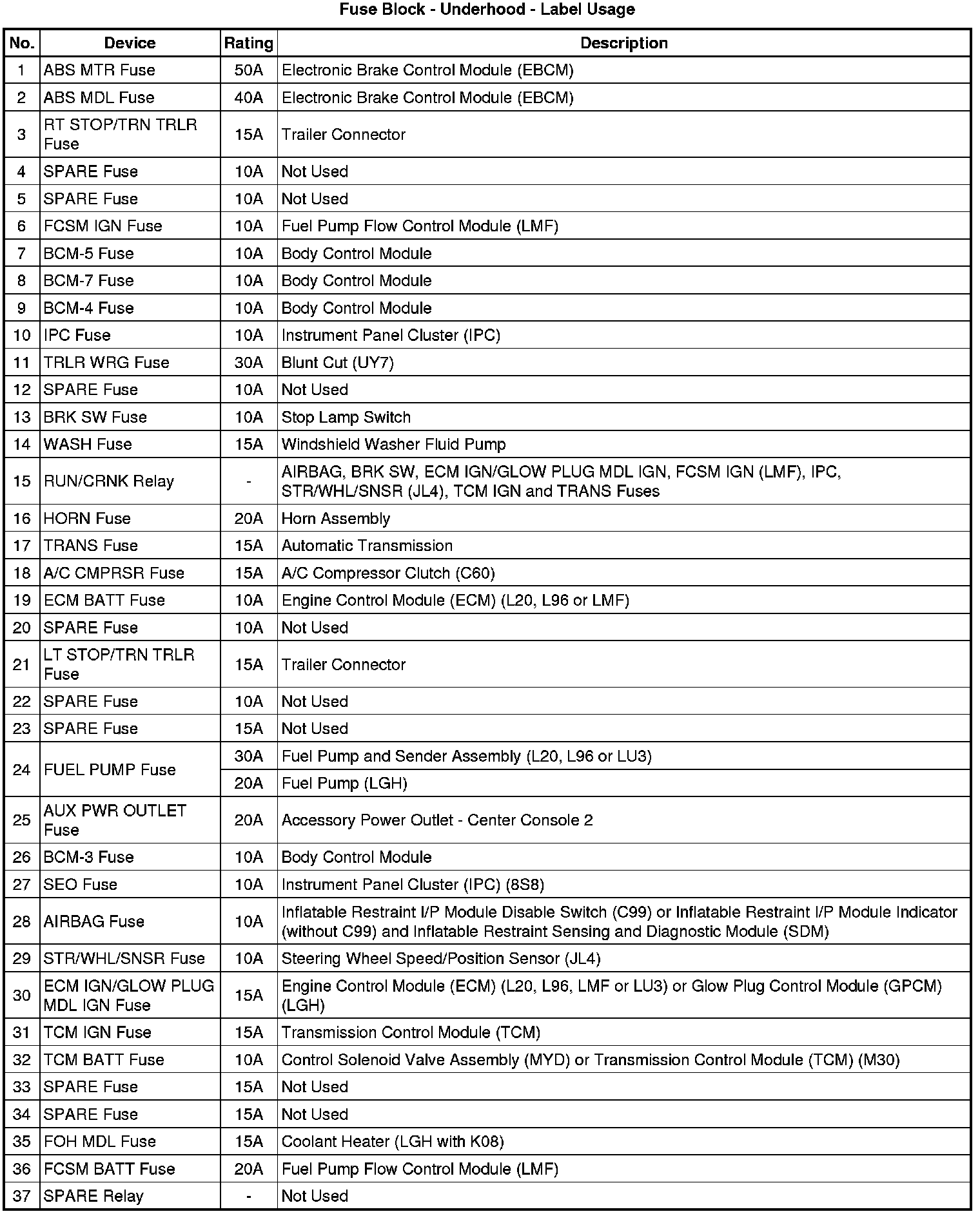 Fuse Block - Underhood Label
