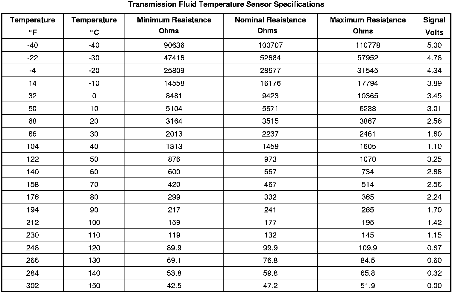 Transmission Fluid Temperature Sensor Specifications