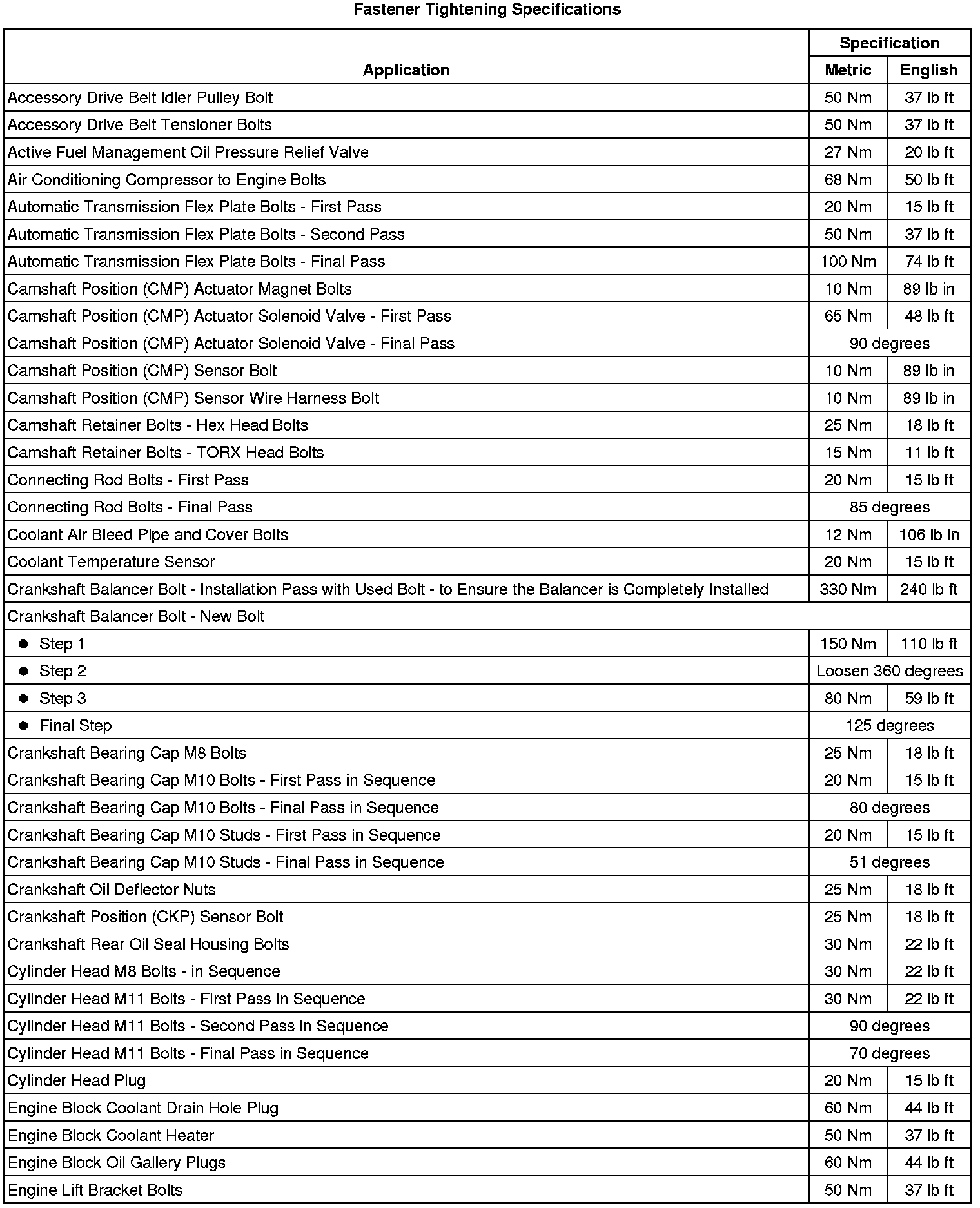 Fastener Tightening Specifications