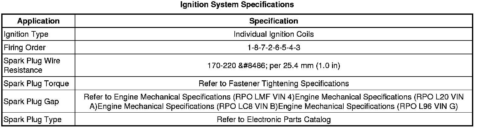 Ignition System Specifications