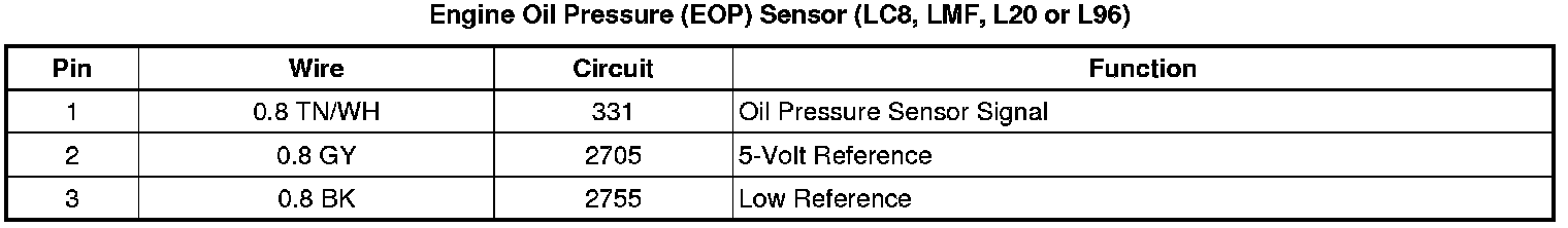 Engine Oil Pressure (EOP) Sensor (LC8, LMF, L20 or L96)