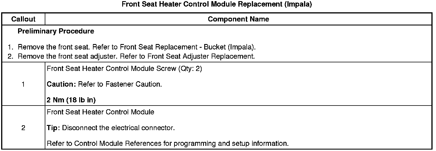 Front Seat Heater Control Module Replacement (Impala)