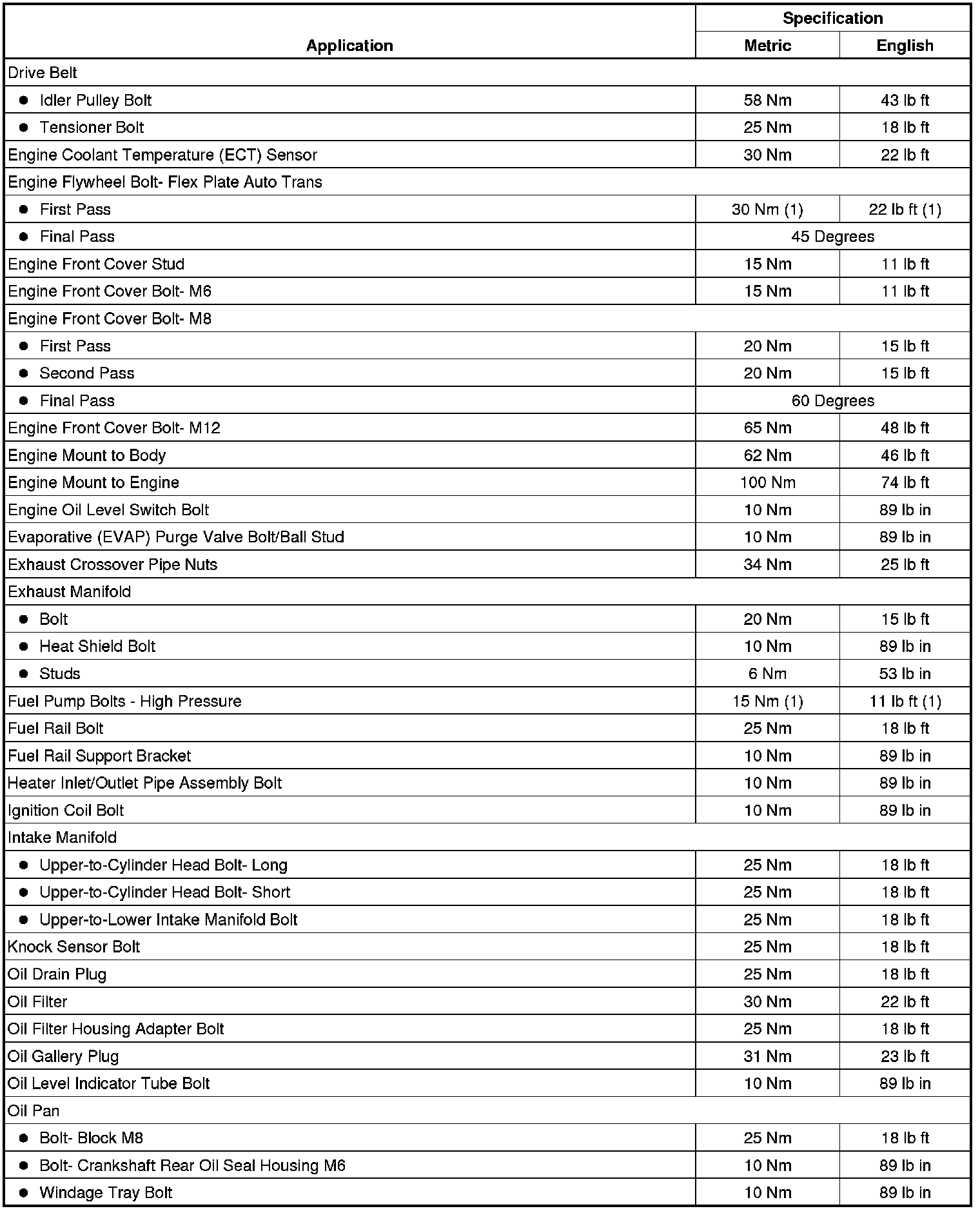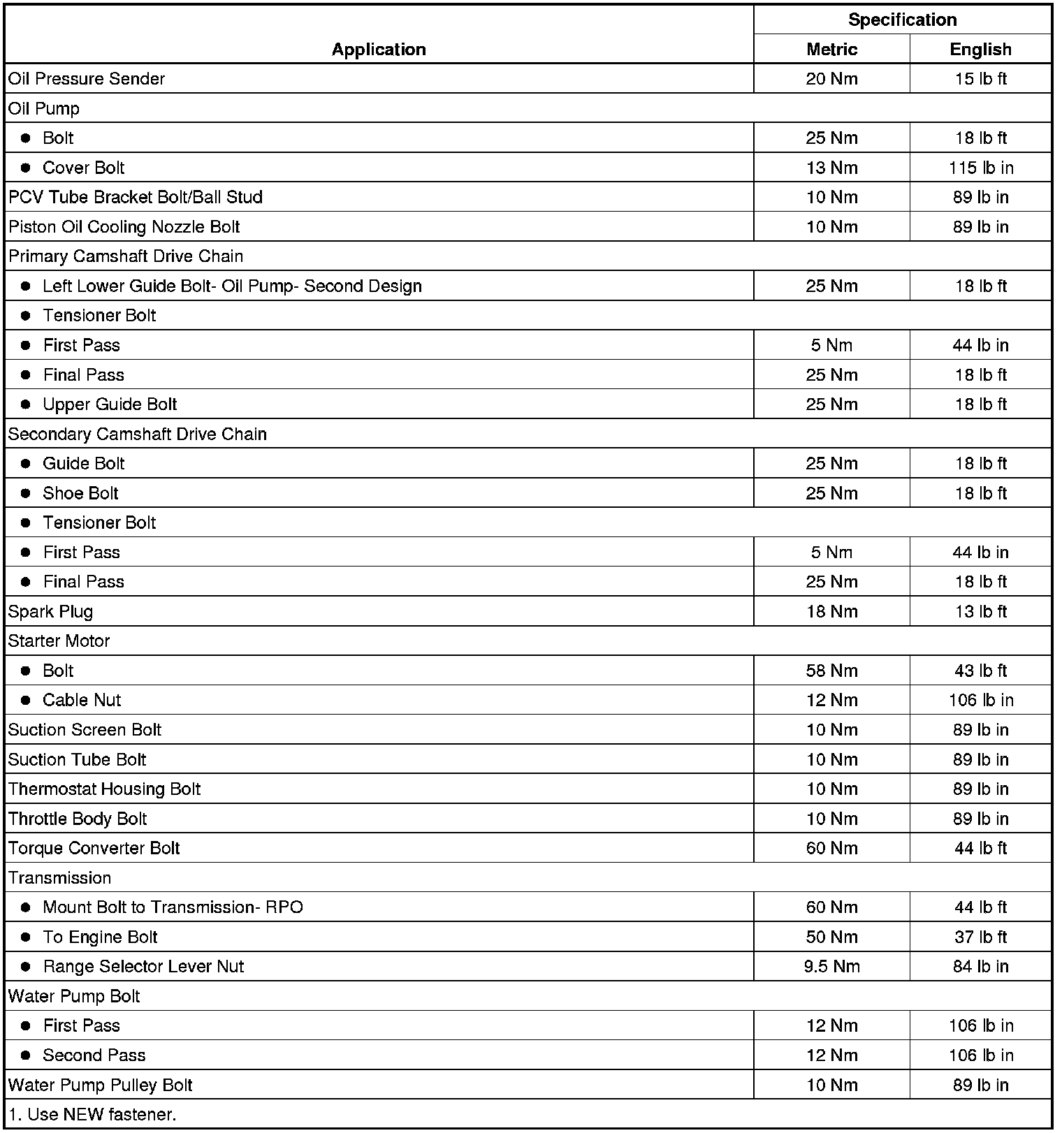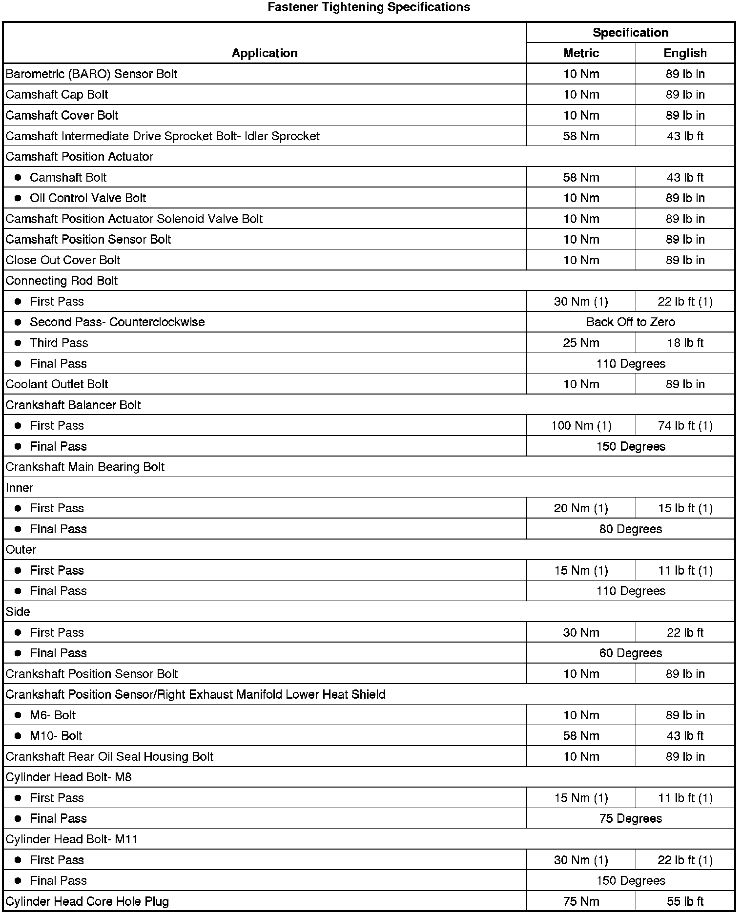 Fastener Tightening Specifications