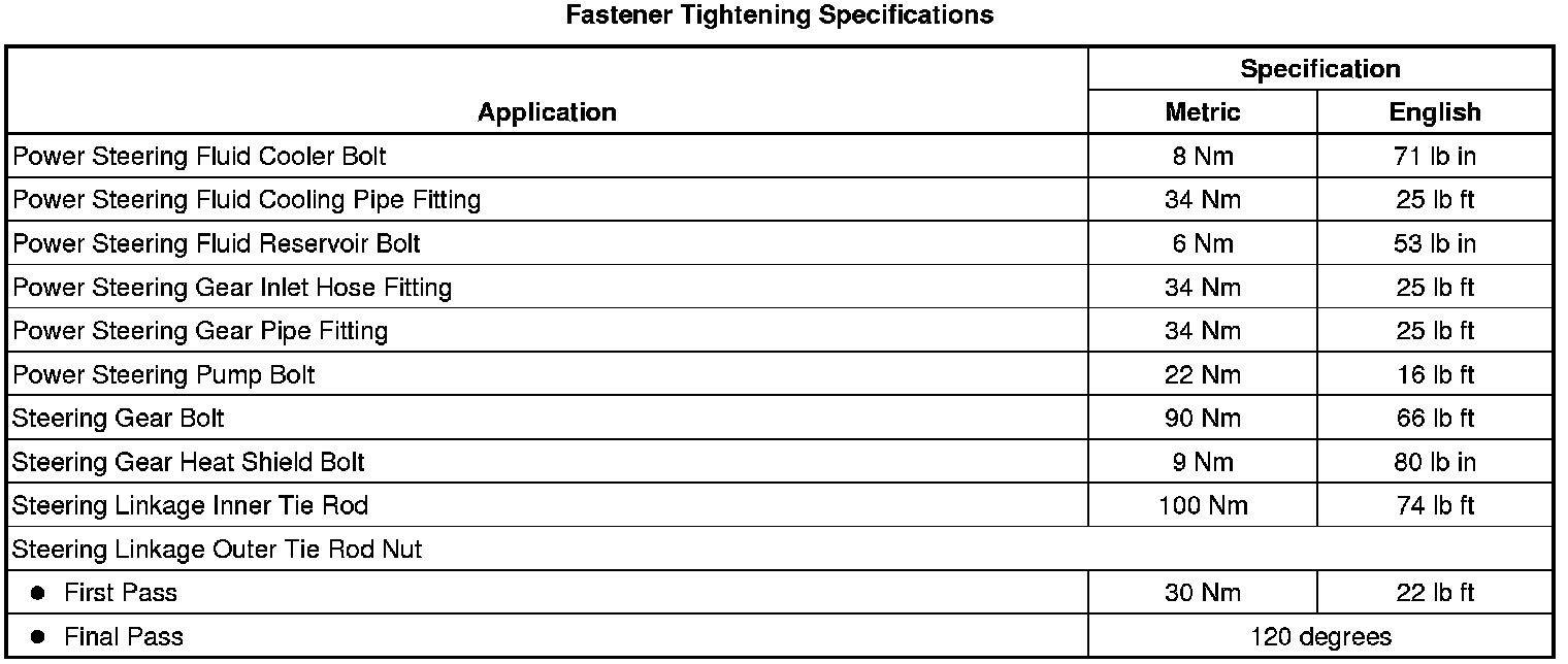 Fastener Tightening Specifications