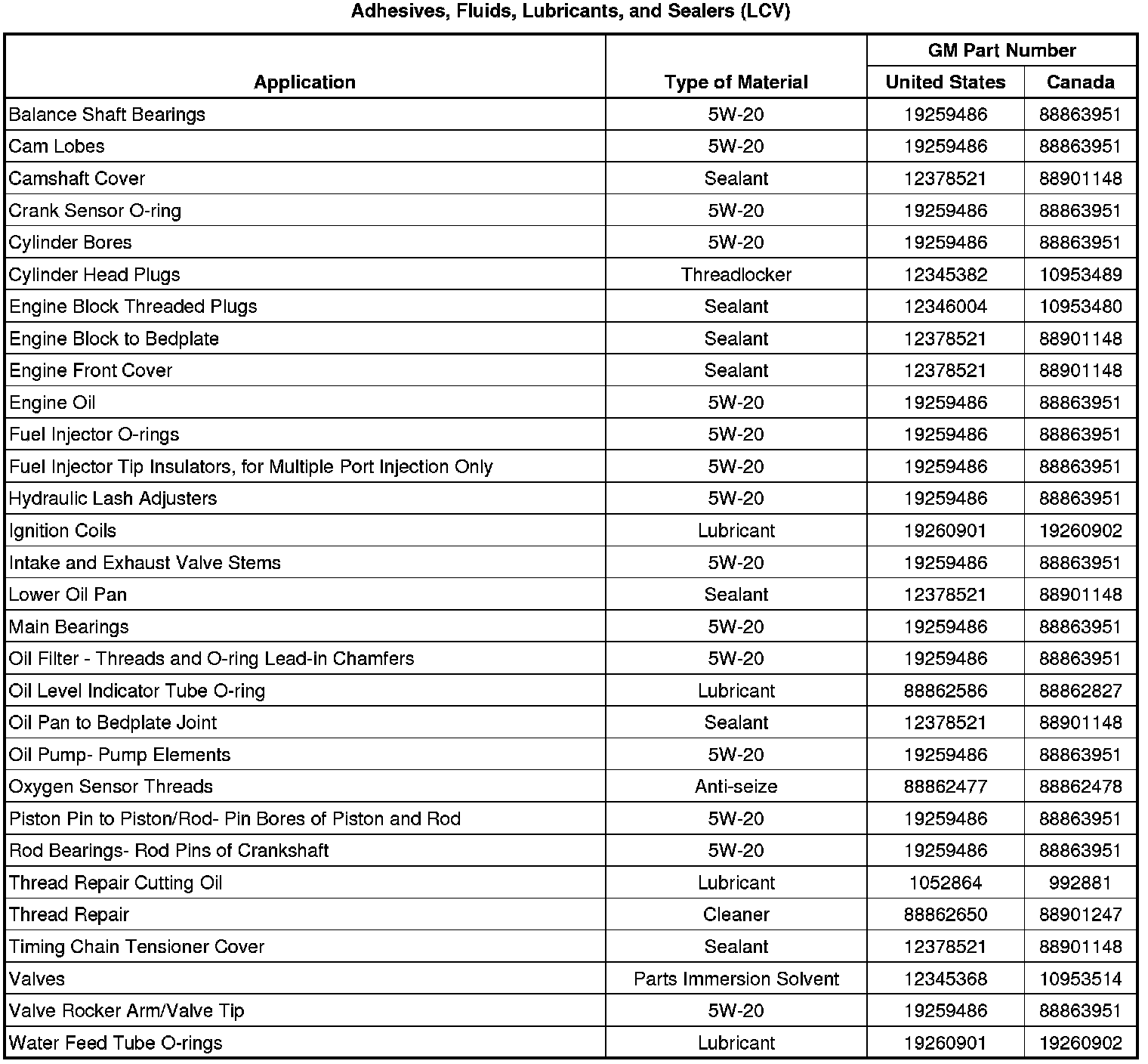 Adhesives, Fluids, Lubricants, and Sealers (LCV)