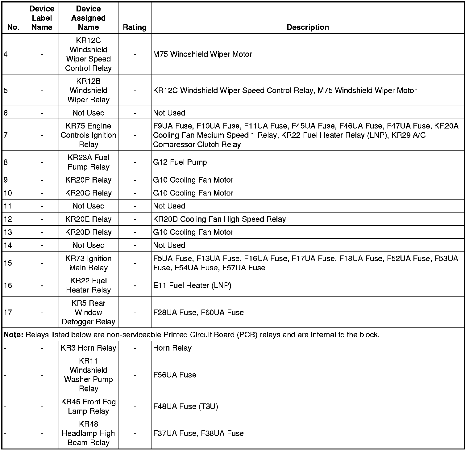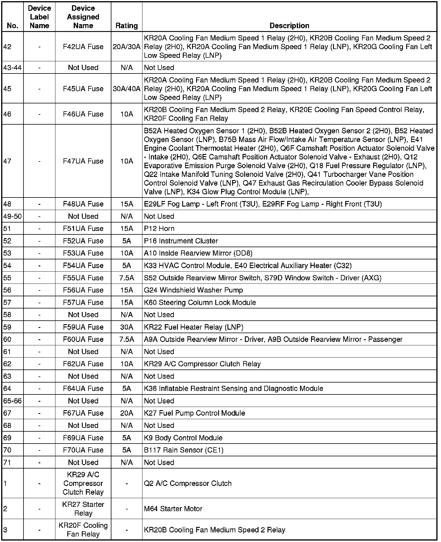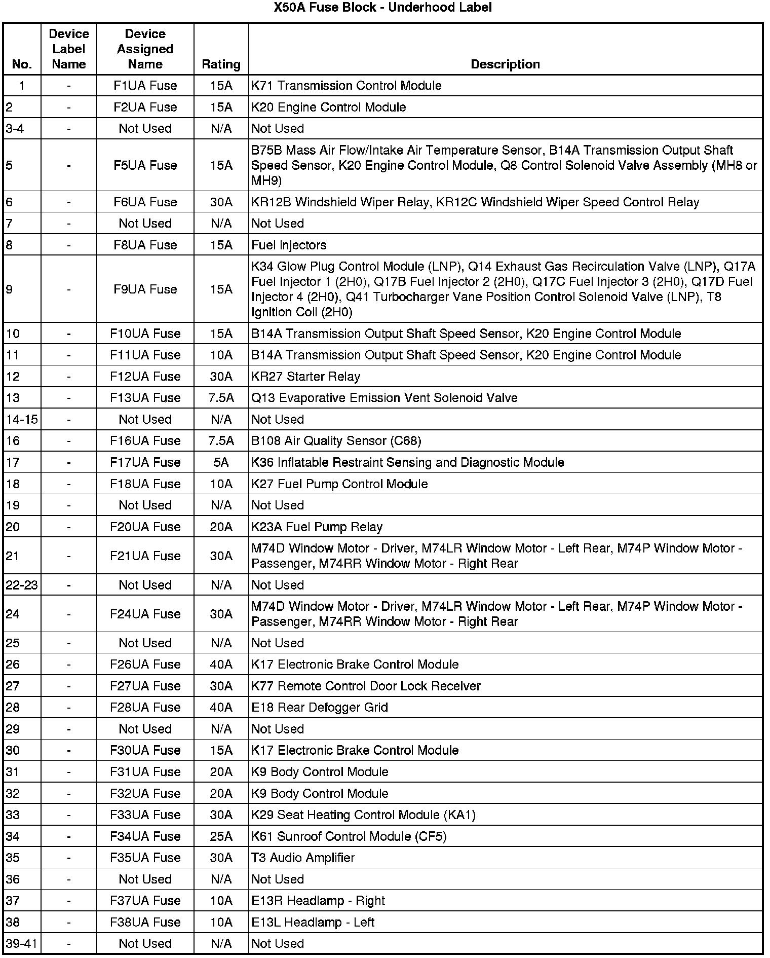 X50A Fuse Block - Underhood Label